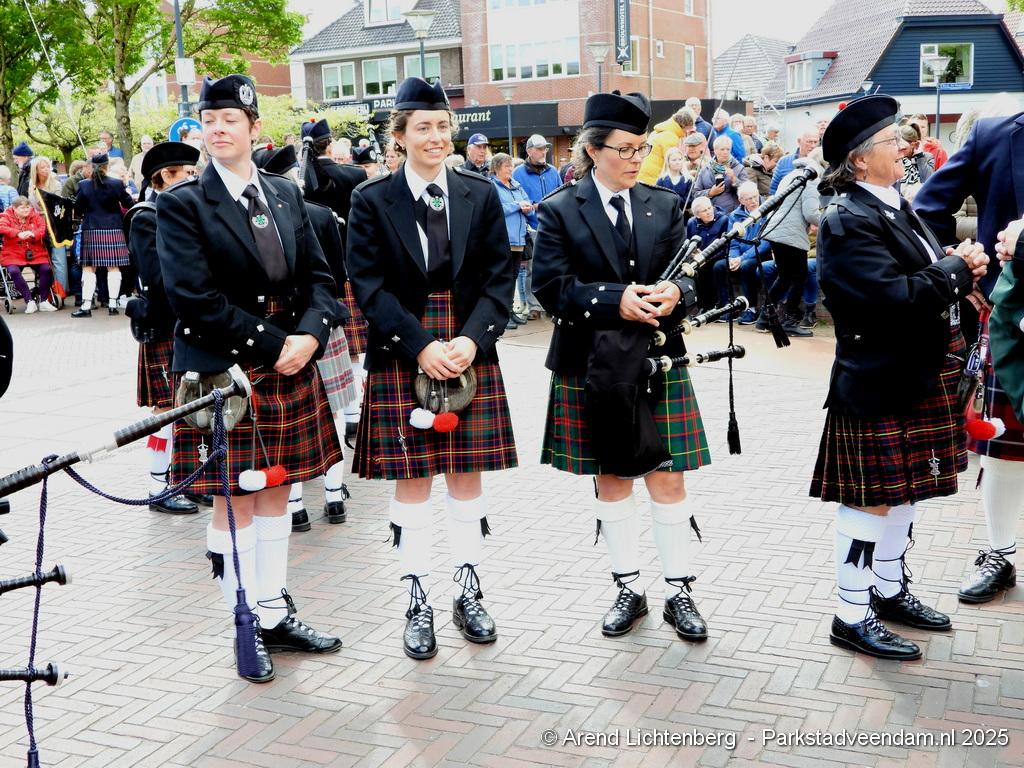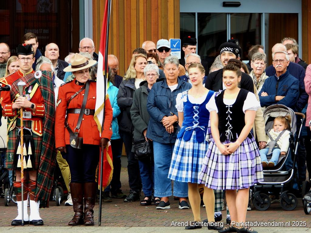 Met 80 muzikanten brachten zij onder grote publieke belangstelling een indrukwekkend eerbetoon aan 80 jaar vrijheid en de hechte band tussen Kelowna en Veendam.