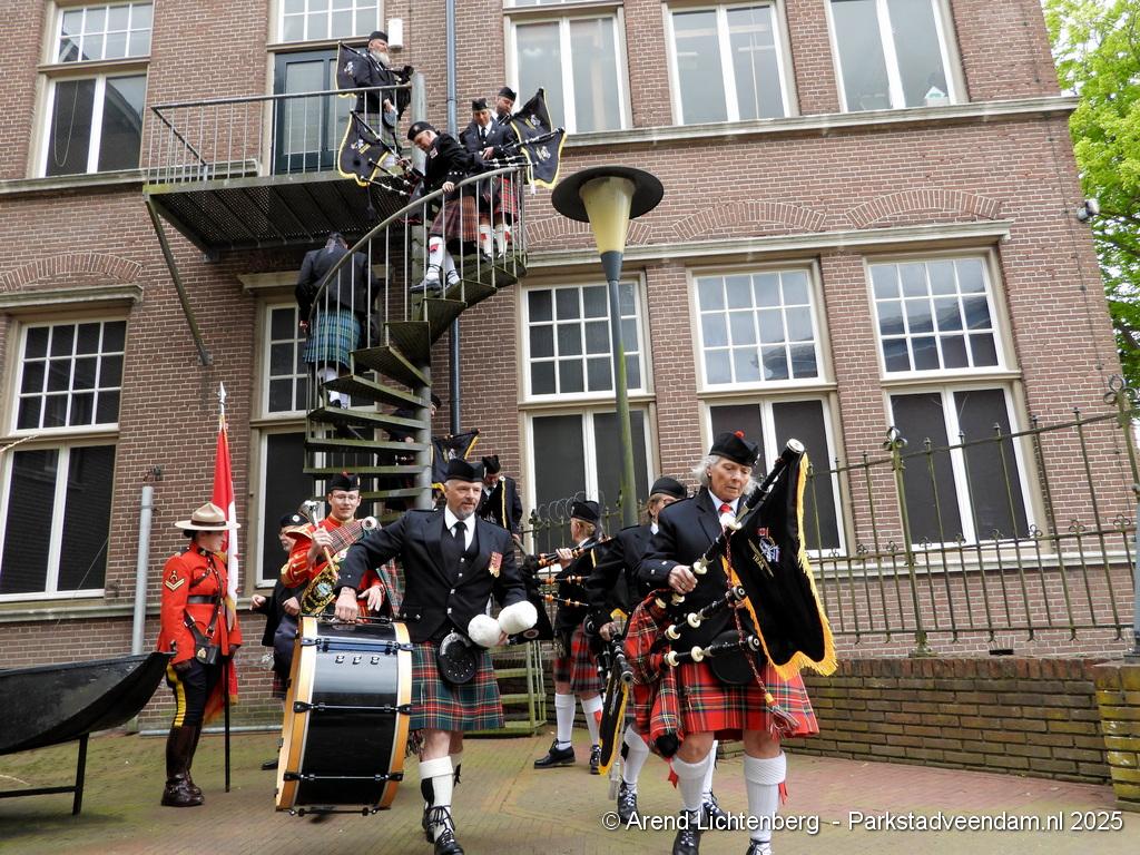 Na de bevrijding was het regiment in totaal negen maanden gelegerd in Veendam. Hun aanwezigheid, 80 jaar geleden, betekende veel voor onze gemeenschap. Wij voelen ons vereerd door uw aanwezigheid hier vandaag en door het eerbetoon dat u brengt aan deze herdenking.”