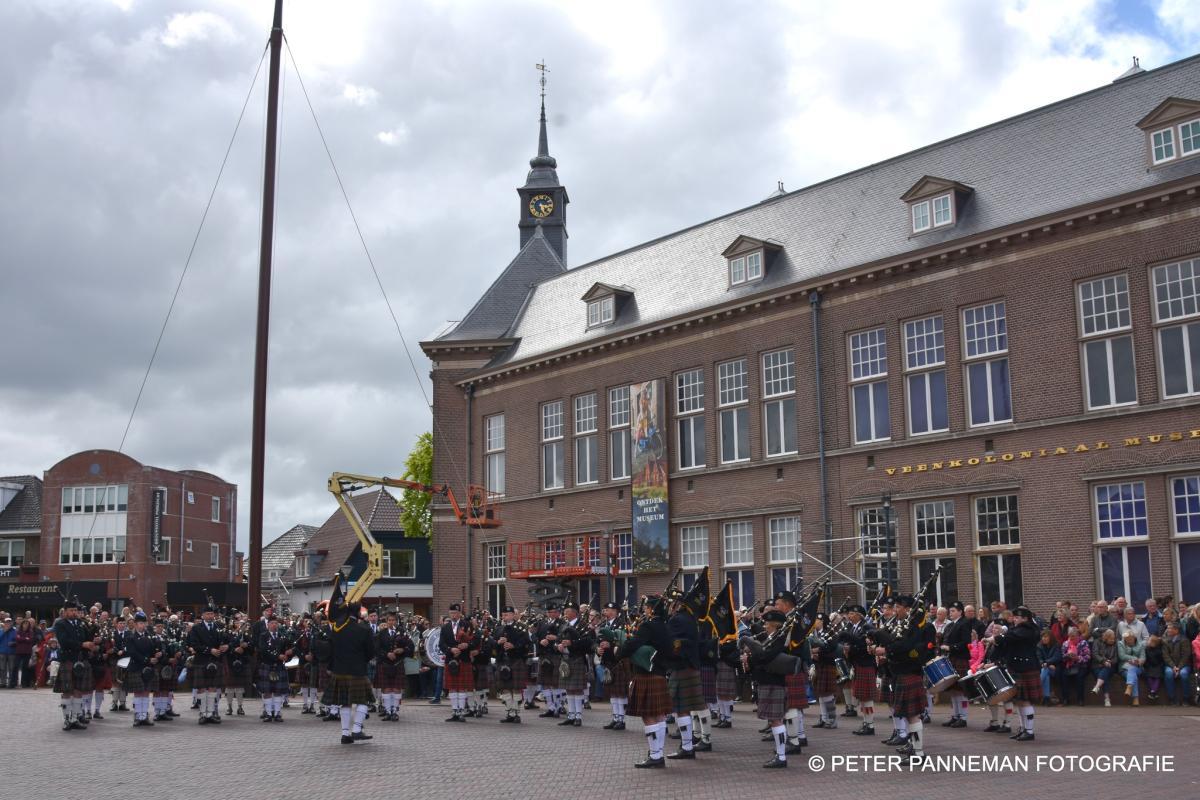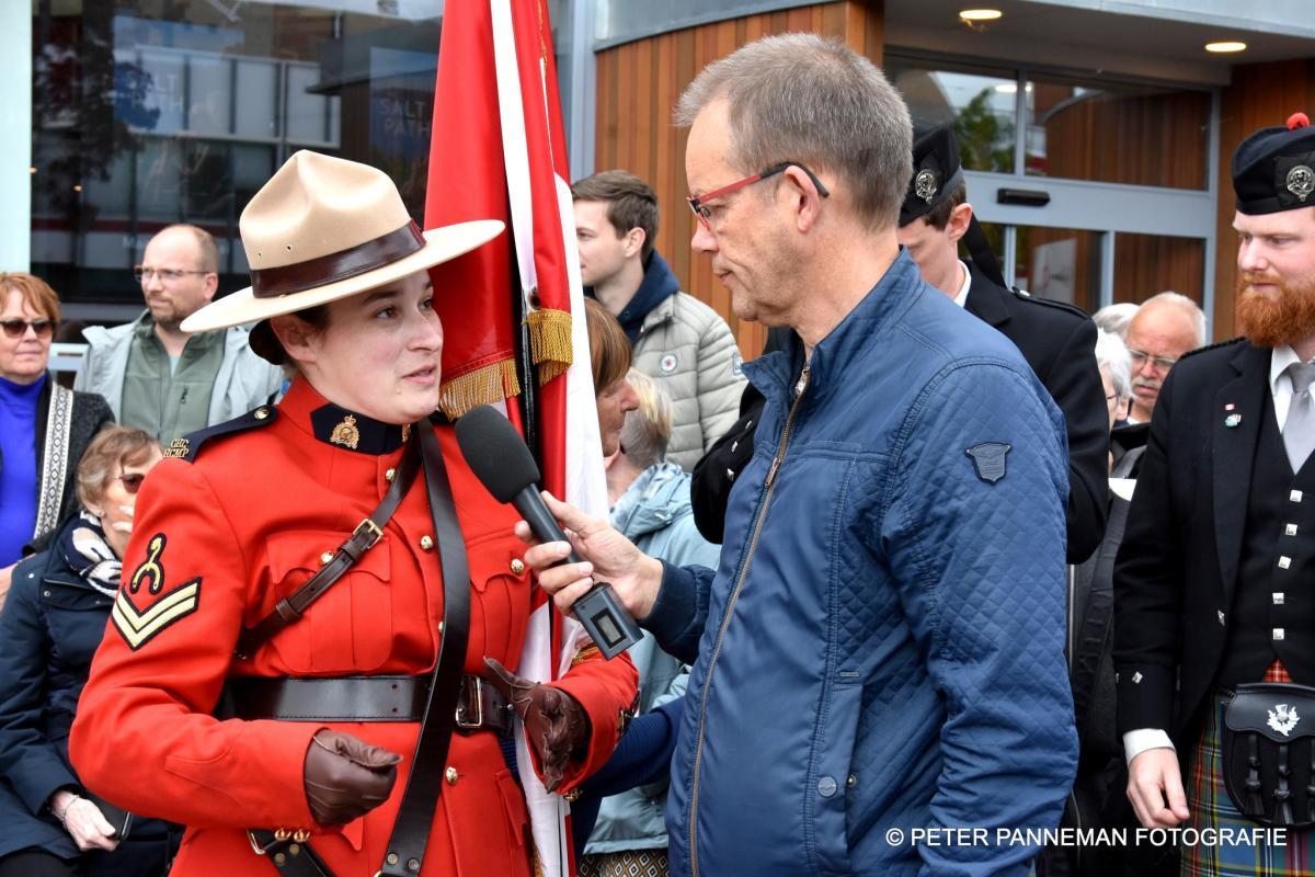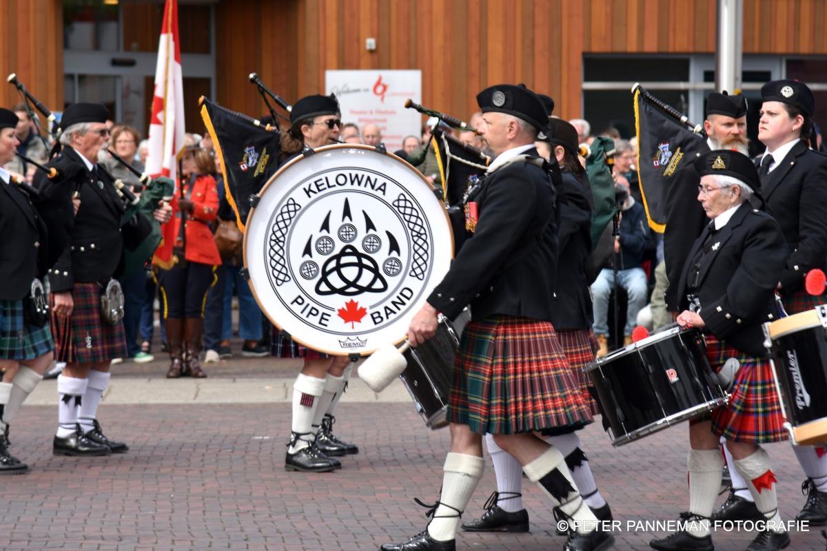 Burgemeester Pleyte heette de 80 muzikanten van de Kelowna Pipe Band welkom en ging in haar toespraak in op de warme band met Kelowna. “Het British Columbia Dragoons Regiment uit Kelowna speelde een belangrijke rol bij de bevrijding van het noorden van Nederland tijdens de Tweede Wereldoorlog.