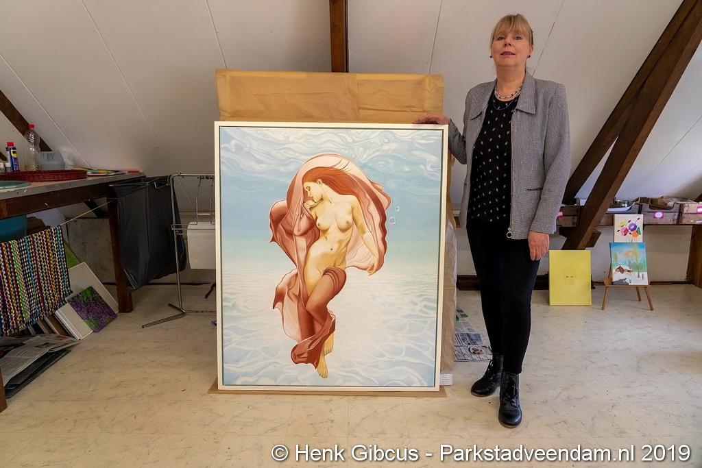 “Zolang ik aan een schilderij werk is het mijn kindje,” vertelt Aafke. “Gemiddeld is zo’n periode toch wel 2 maanden, exclusief de voorbereiding. De laatste handeling is de vernislaag over het doek. Het is dan fysiek klaar. Dan neem ik er emotioneel ook afscheid van.” Natuurlijk weet ik meestal waar mijn werk blijft. Mijn mooiste werk hangt bijvoorbeeld bij een particuliere verzamelaar in Groningen Stad. “Je vertrouwt erop dat de koper jarenlang van mijn werk mag genieten, en de mensen er blij van worden.”