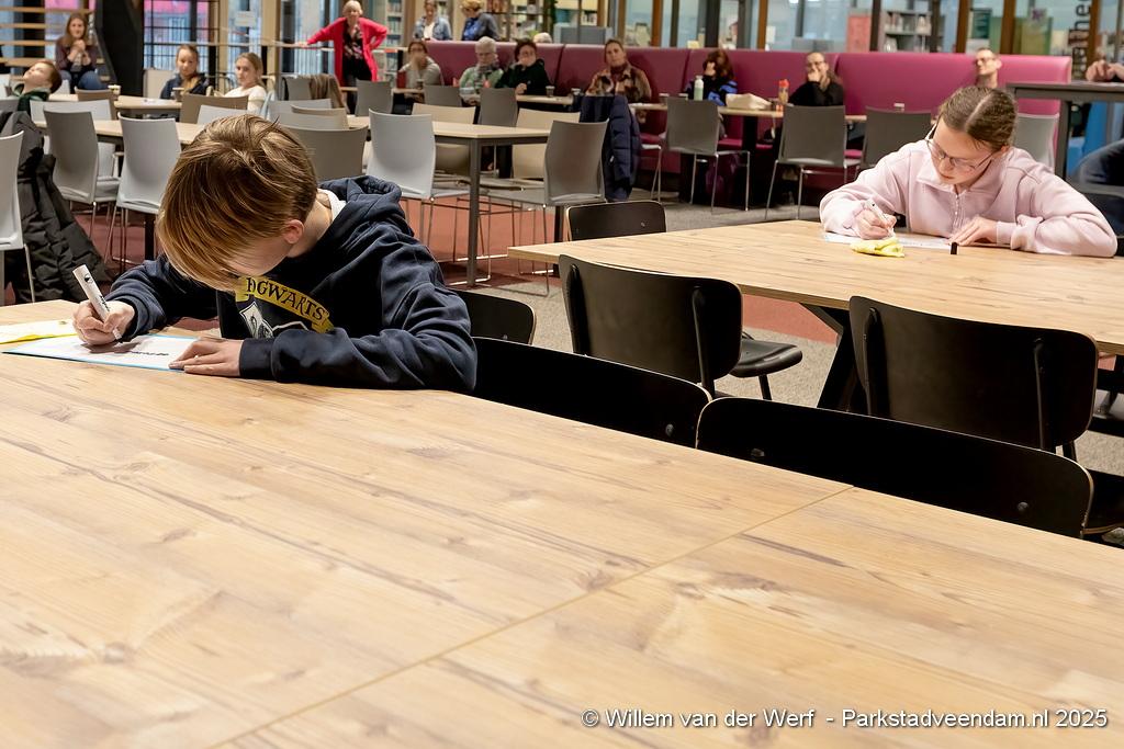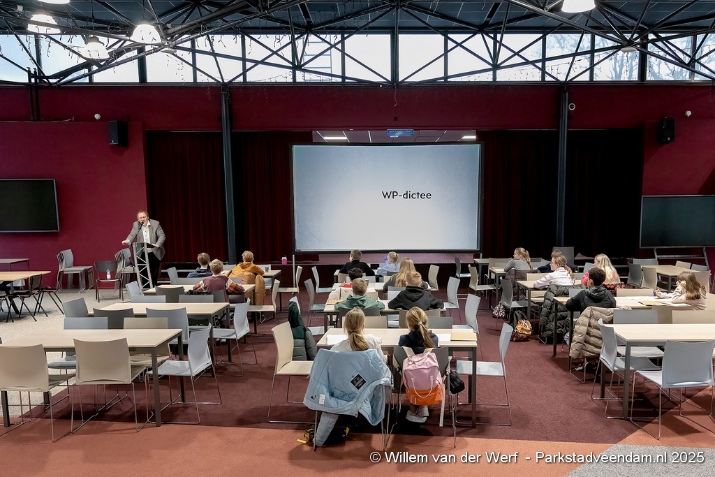 Voor slechts 17 leerlingen uit de groepen 7 en 8 van diverse scholen werd het dictee dondermiddag voorgelezen door de bestuurder van Winkler Prins Jan de Wit.
