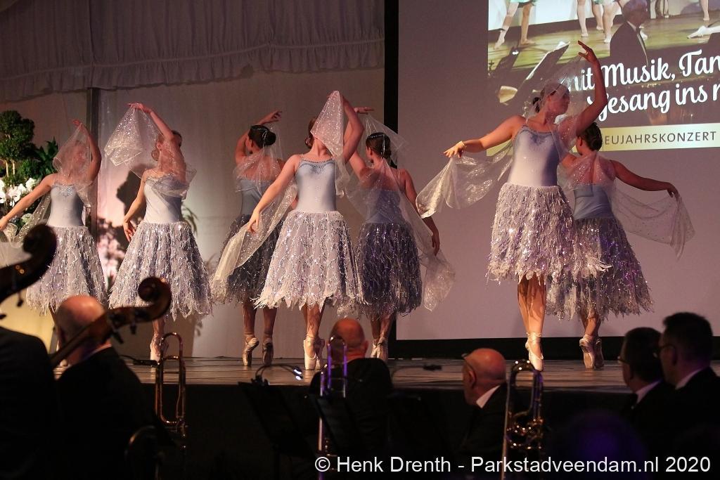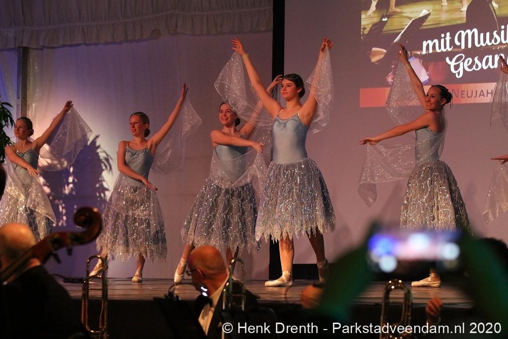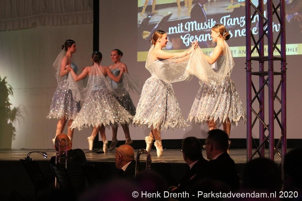 Het was een muzikale toost op 2020, gemixt met vocale hoogtepunten van mezzosopraan Hanneke Tichelaar, bariton David Visser, tenor Falco van Loon en met oogstrelende performances van Tanzstudio Tanzbogen uit het Duitse Haren.