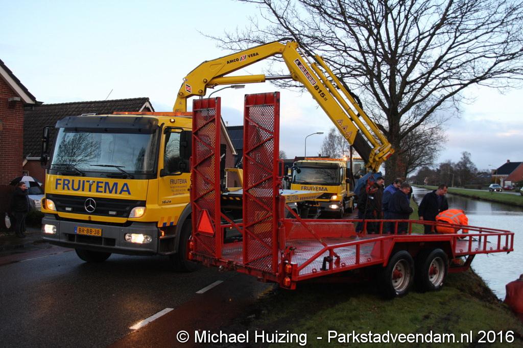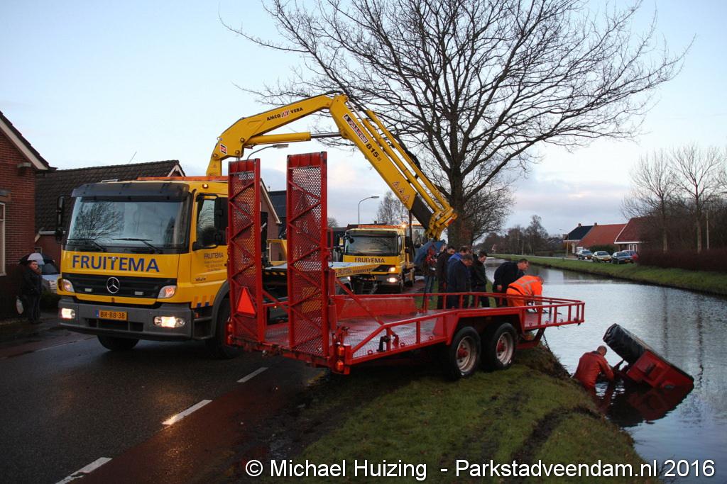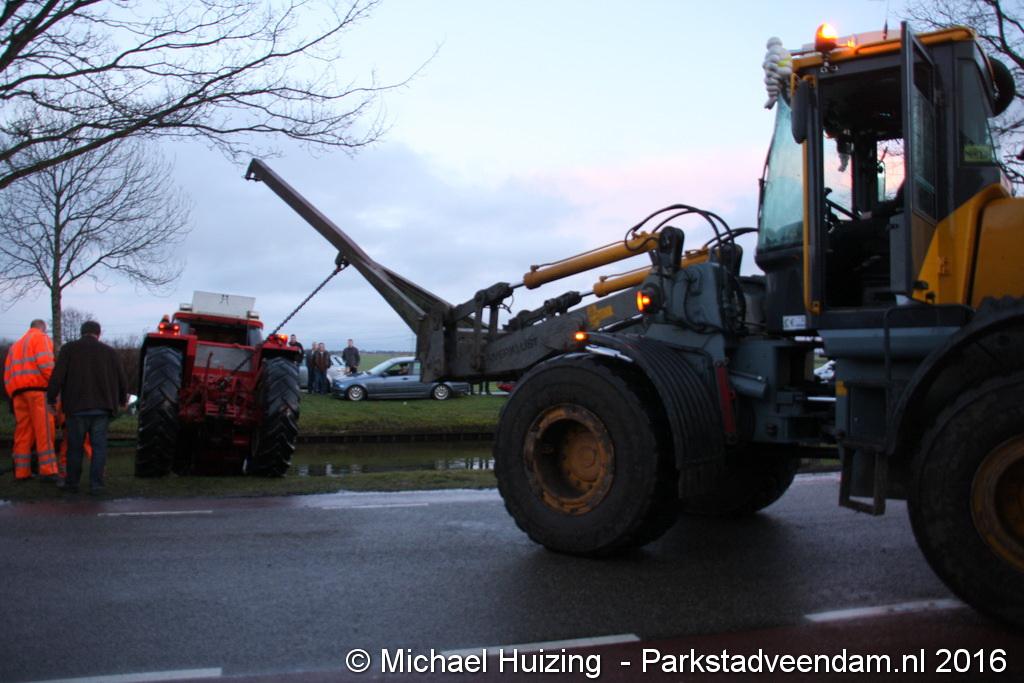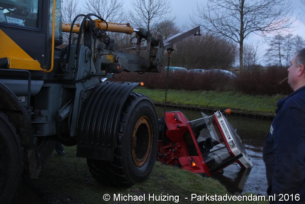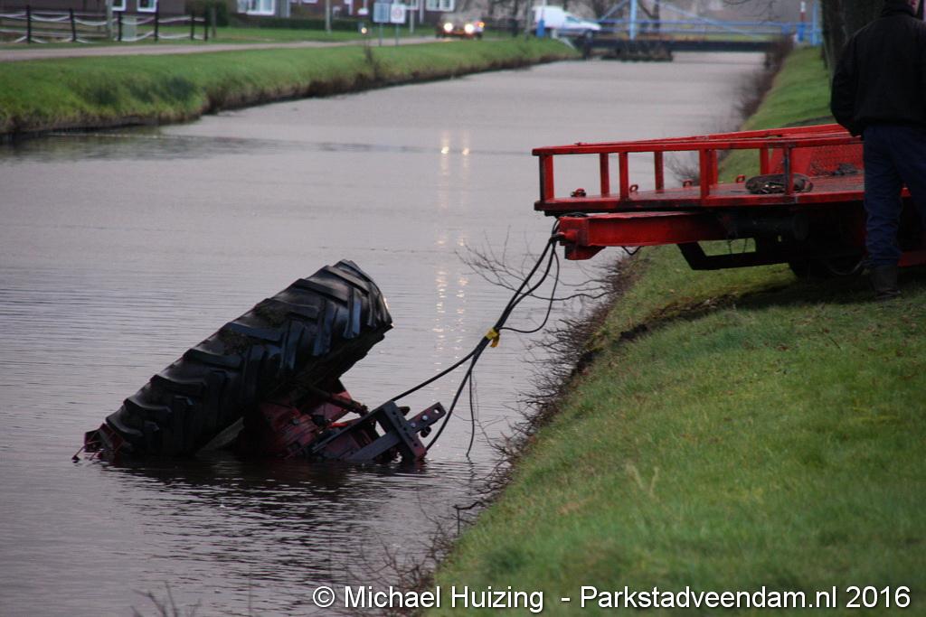NIEUWE PEKELA - Dinsdag aan het eind van de middag is een tractor te water geraakt aan de Tilstraat in Nieuwe Pekela. Alle hulpdiensten werden gealarmeerd waaronder de duikers uit Groningen. Bij aankomst van brandweer Nieuwe Pekela bleek dat de bestuurder inmiddels veilig aan de kant stond en werden de duikers geannuleerd. Berger Fruitema heeft in combinatie met een grondverzetbedrijf de tractor weer op het droge getakeld.