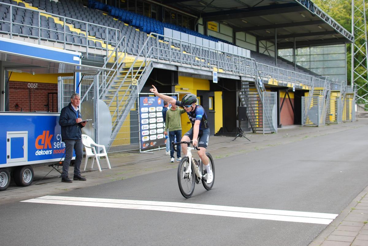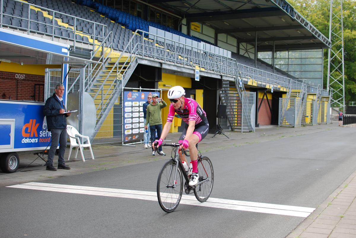 Is dit misschien een gemiste kans van de KNWU? Het is dat ik bij toeval ontdekte dat hier in de Parkstad gekoerst werd. Anders had ik het niet geweten. Gezien het handjevol toeschouwers dat bij de finishstreep stond, hebben meer mensen in Veendam en omgeving dit niet geweten. Slechts wat familieleden en een paar mensen van de organisatie. Dat was het wel wat betreft publieke belangstelling. De tribunes bleven totaal onbezet. Leeg.
