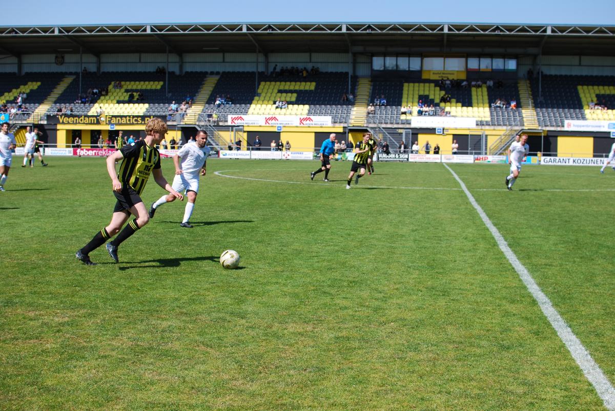 Het terecht tot nu toe bewierookte piepjonge Veendammer elftal gaf deze middag niet thuis tegen het eerste studententeam uit de stad Groningen. Vanaf de derde minuut liep het eigenlijk al achter de feiten aan, alle goede tactische bedoelingen ten spijt. TKB scoorde uit de rebound van een penalty de 0-1 en kwam eigenlijk alleen in het laatste kwartier onder druk te staan. TKB-doelman Twan Kuitert was schier onklopbaar. De thuisclub creëerde een veldoverwicht met veel balbezit maar liet echter na de kansen die er wel degelijk kwamen te benutten. Het heilige vuur, de passie, de échte wil om deze topwedstrijd te winnen viel van een aftand niet te ontdekken. De geelzwarten leken met de handrem er op te voetballen en vervielen in een oud leerpunt. Iedereen deed z’n uiterste best en er werd soms best aardig gevoetbald, maar de grinta en het gif ontbrak. De echte overtuiging om de tegenstander eens figuurlijk behoorlijk pijn te doen. De échte wil om te winnen. Vlak voor rust waren de bezoekers namelijk al op 0-2 gekomen. Het spel van de Veenkolonialen viel het best te omschrijven als ‘ideale schoonzonen-voetbal.’ Aardig en leuk spel maar waar waren de echte killers? Was het weer als vanouds: wel blaffen maar niet bijten? En waar waren de echte leiders in het jonge team? Wanneer wint Veendam 1894 weer eens een topwedstrijd in de competitie? Door de winst van de gasten komen ze op gelijke hoogte met de ambitieuze Oost-Groningers. Vijf gespeeld en beide 10 punten. Zeker niet slecht maar ook niet top. Groen Geel heeft de maximale score behaald en gaat met 15 punten in 3 R aan de leiding, gevolgd door Wildervank met 13. Daarna volgen Veendam 1894 en TKB.