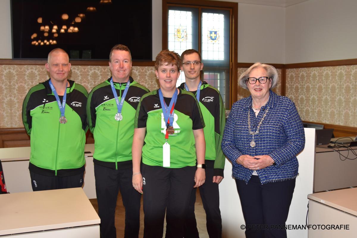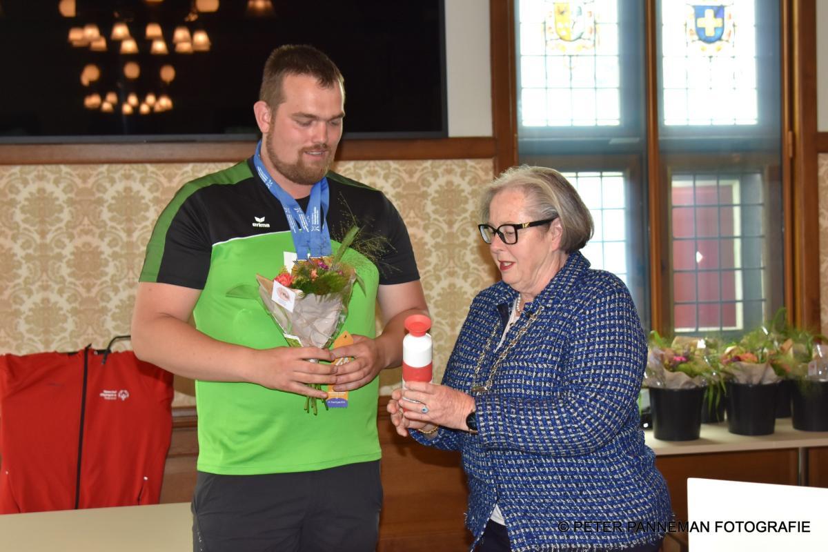 In een gezellige sfeer mochten de sporters en coaches ieder naar voren komen om persoonlijk de felicitaties, bloemen en een attentie van de burgemeester en wethouder in ontvangst te nemen. Waarna er onder het genot van een hapje en drankje werd nagepraat. Daarna volgde voor de lokale pers nog een bordesscene voor het gemeentehuis.