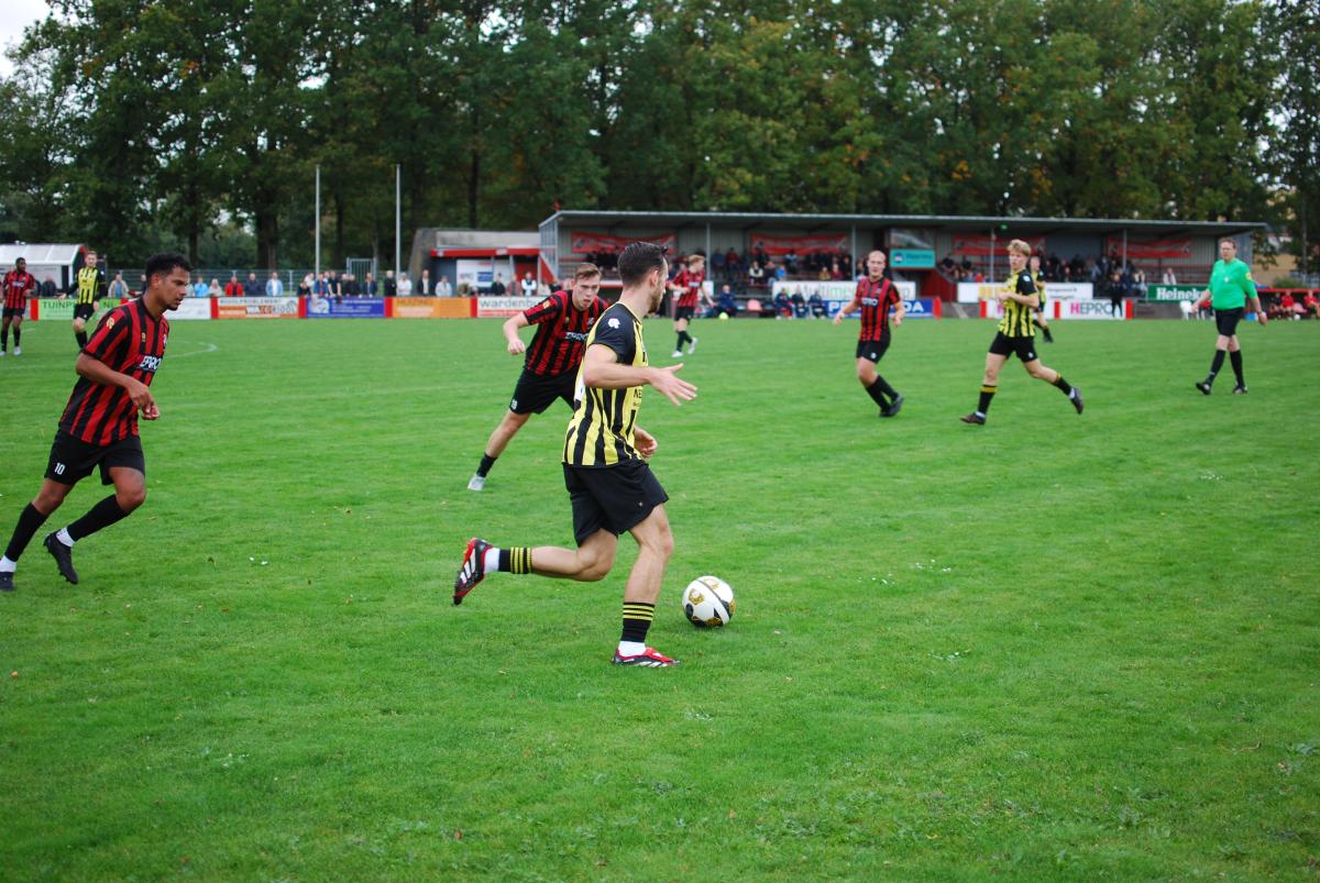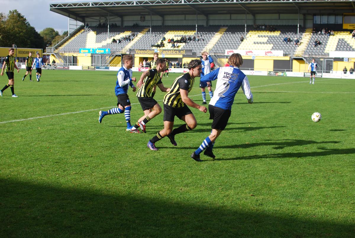 Het was een rustige herfstdag op de 18de oktober 2025 en het hoofdveld op het prachtige Sportpark Boerbos lag er kort gemaaid en uitnodigend bij. Natuurlijk wilden beide collega-trainers niet van elkaar verliezen. De eerste fase was voor de thuisclub. Het leverde twee mogelijkheden op. De eerste gevaarlijke situatie in het doelgebied bij de gastheren was na een kwartier. Melvin Tehubijuluw, die in de eerste helft een sterke indruk maakte, wist met een goede actie Dinand de Jonge in stelling te brengen. Maar Veendams aanvaller schampte slechts de bal. Daarna moest de formatie van Mac Andrew een teleurstelling verwerken. Rond de 25ste minuut ging centrumverdediger Dion Beks geblesseerd naar de kant. Jeremy van Dijk was zijn vervanger. Iemand langs de kant wist hoe de verhoudingen in veld lagen: ‘Ze maken elkaar niet veel.’ Er waren weinig echt uitgespeelde kansen. Derhalve bleef de ruststand 0-0.