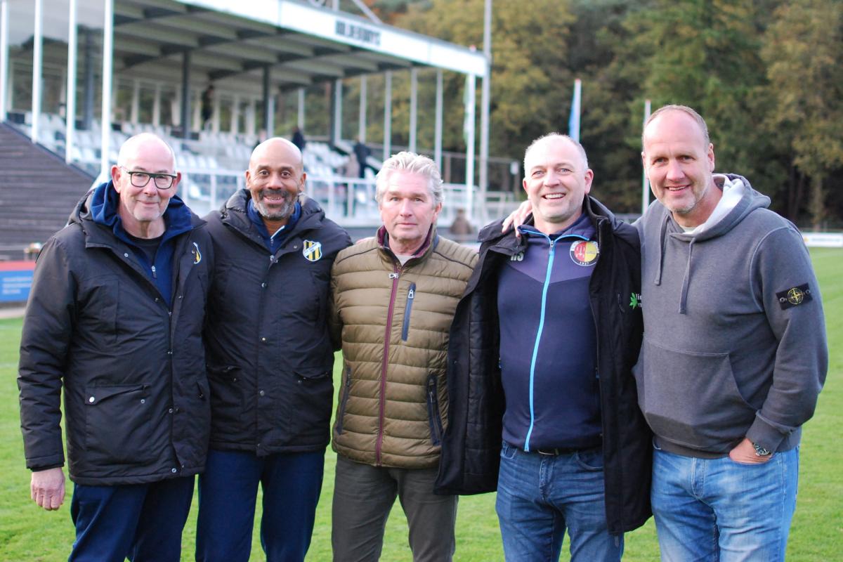 Vooraf stond het duel in het teken van de confrontatie tussen twee oud-ploeggenoten uit de BV Veendam-tijd. Maar liefst twaalf seizoenen droegen beide trainers hetzelfde tenue bij profclub BV Veendam. Armand Mac Andrew, nu hoofdtrainer van zaterdag derdeklasser Veendam 1894, speelde vijftien seizoenen voor de betaaldvoetbalclub. Hij kwam tot 350 wedstrijden, scoorde 6 keer en kwam 23 keer voor de beker in actie. Zijn tegenstrever Rick Slor, nu trainer van Rolder Boys, voetbalde 12 seizoenen tussen 1989 en 2006 voor de Veendammer profclub. Hij maakte 15 goals in totaal 366 wedstrijden en speelde een recordaantal bekerontmoetingen: 35. Helemaal speciaal maakte het dat de oud-collega’s uit hun BV Veendam-periode, Jan Korte en Dick Lukkien, nieuwsgierig als ze waren in Rolde kwamen kijken. Samen met Veendam 1894-fysiotherapeut/verzorger Otto Voorma was er na afloop zowaar even een klein BV Veendam-reünietje en ging het vijftal op de foto.