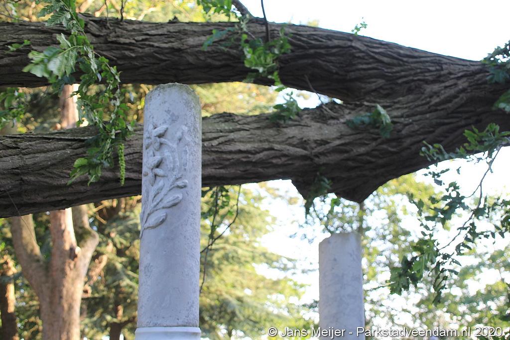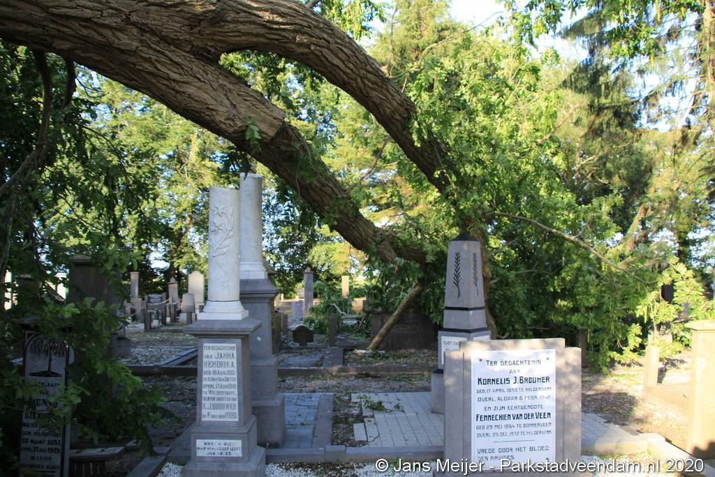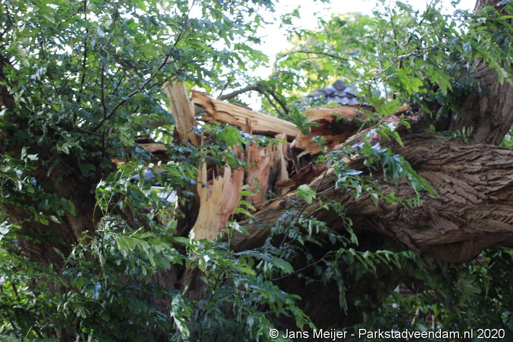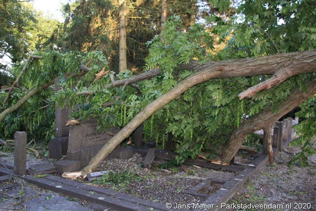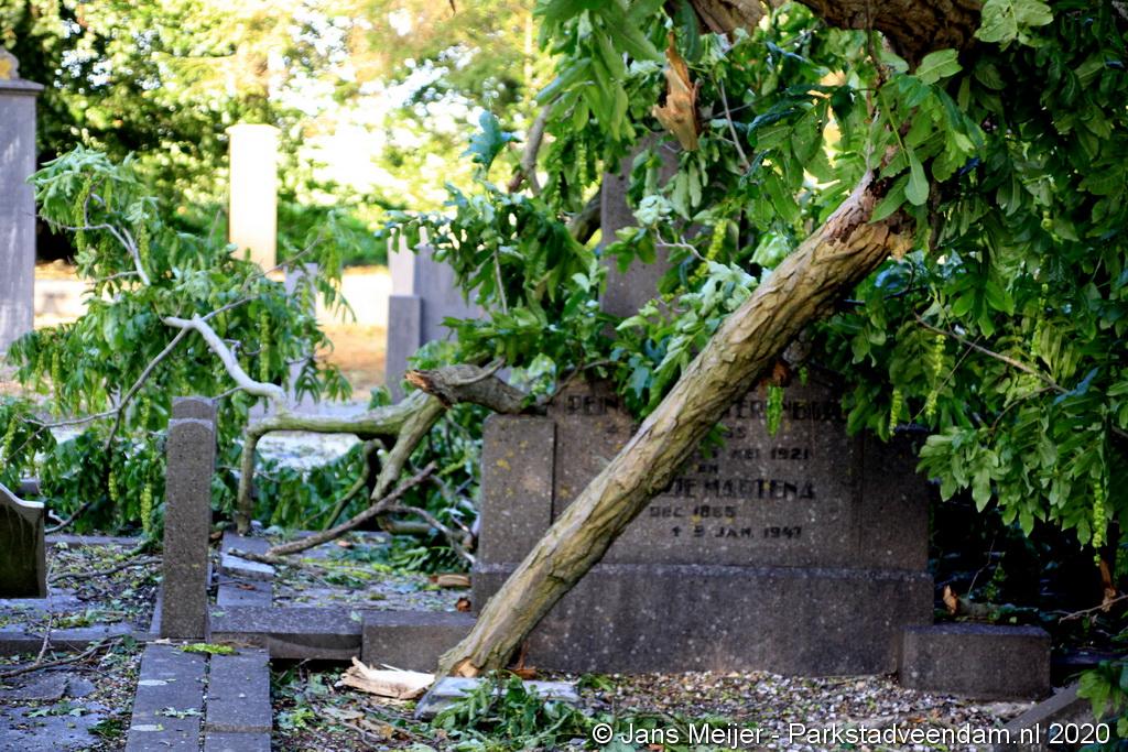 Een door bliksem getroffen boom heeft zaterdag tijdens het noodweer voor de nodige schade gezorgd op het kerkhof aan de Dalweg in Wildervank.