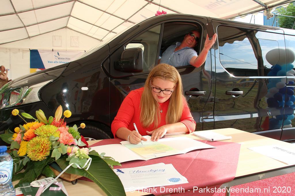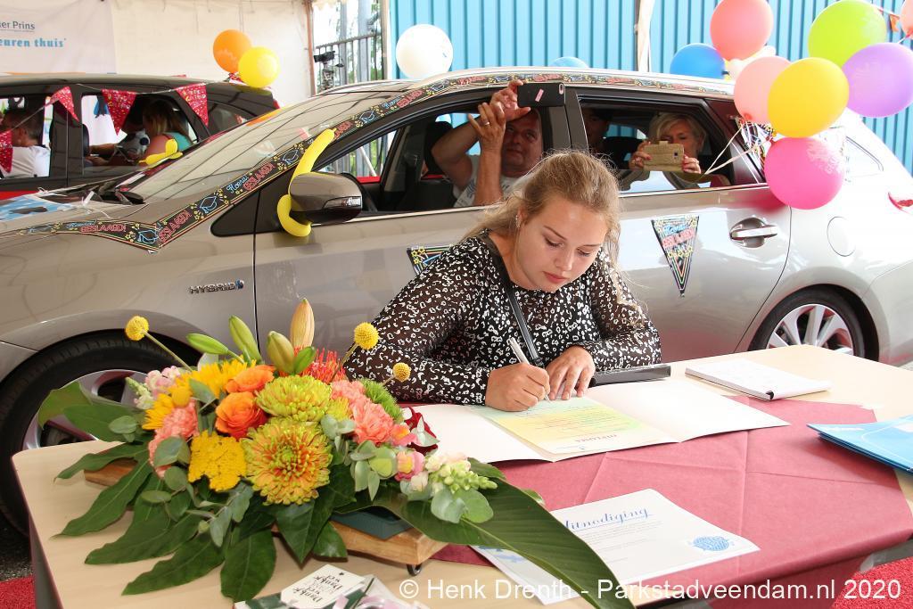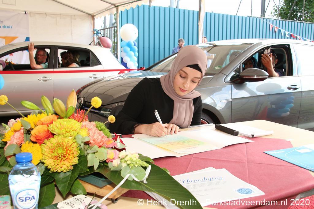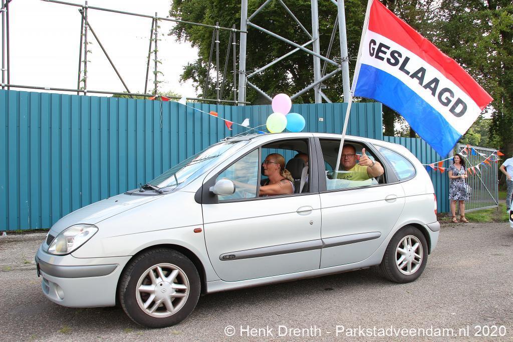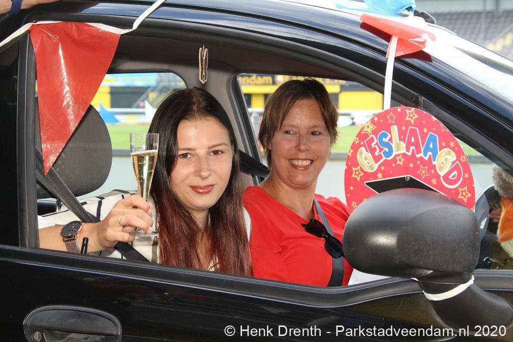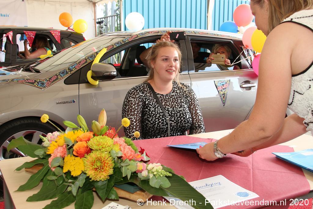 Daar had de school een ludieke oplossing voor bedacht met een grote rol voor de auto. Een diploma-uitreiking middels een ‘drive-trough’ uitreiking in het voetbalstadion aan de Langeleegte. “Collega Martijn Visser heeft het draaiboek gemaakt. We moesten toch wat verzinnen om die anderhalve meter te kunnen ondervangen”, verteld Dieuwke Ridderbusch.