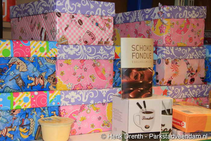 Langs de scholen, die zich hadden aangemeld, was er nog een rondrit. Eerder was er al door scholen aangeleverd. De Westerschool had mooie versierde dozen gebracht. De oogst van hun kerstactie was in 32 dozen ondergebracht.