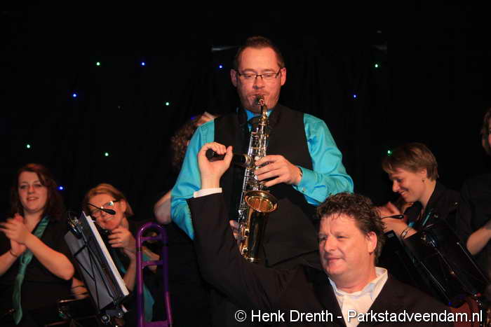 Theo Driessen wist het aanwezige publiek te prikkelen om luidkeels mee te zingen en mee te dansen. Zeker na de pauze kwam het Veendammer publiek goed los en ontstond er een geweldig groot feest in Parkzicht.