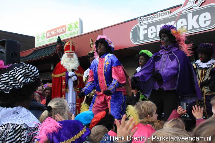 Ondertussen werden bij het winkelcentrum de kinderen al door de danspieten vermaakt. Met op het plein veel mensen, meer dan in andere jaren. Bij het winkelcentrum werd de Sint om 14.00 uur door mevrouw Anita Pleszynski welkom geheten, en door voorzitter Grietto Visser van de ondernemersvereniging van Wildervank.
