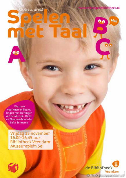 SPELEN MET TAAL - Vrijdag 15 november organiseert Bibliotheek Veendam een nieuwe editie van ‘Spelen met Taal: kleuters in de bieb'. Dit keer in samenwerking met leerlingen van de Muziek-, Dans- en Theaterschool onder leiding van Siska Sennema.