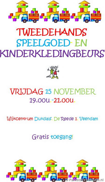 Vrijdagavond 15 november van 19.00-21.00 uur organiseren wij daarom een tweedehands speelgoed- en kinderkledingbeurs in Wijkcentrum Dukdalf in Veendam. Een zaal vol met speelgoed en kleding, daar moet toch iets moois tussen zitten? Kom dus zeker langs.