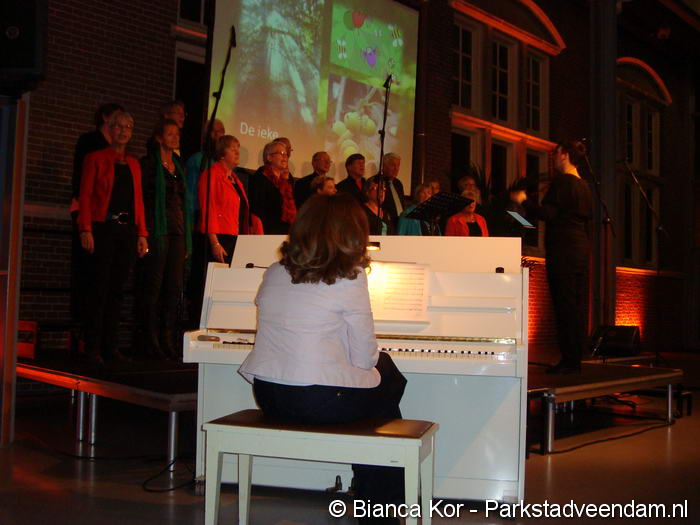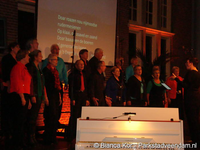 Het derde concert van het koor in vanBeresteyn is door veel mensen bezocht. Normaal gesproken staat het gehele koor al klaar om te beginnen. Het Nedersaksisch Vocaal Ensemble koos voor een ander begin. Een groep koorleden stond al te zingen toen er steeds meer leden bij kwamen vanuit het publiek. De huidige pianiste is op dit moment in Londen. Zij en het koor hebben geluk dat haar moeder ook piano speelt en deze avond inviel. Het eerste lied dat ten gehore werd gebracht was overigens 'Het earappellaand' van Ede Staal.