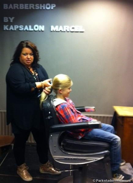Sandra en Marcel Veen van kapsalon Marcel kregen de eer om de vlecht er af te knippen en Max te voorzien van een trendy kapsel...erg spannend en bijzonder dapper van Max! De staart van Max wordt door stichting Haarwens gebruikt om er een pruik van te maken voor zieke kindertjes.