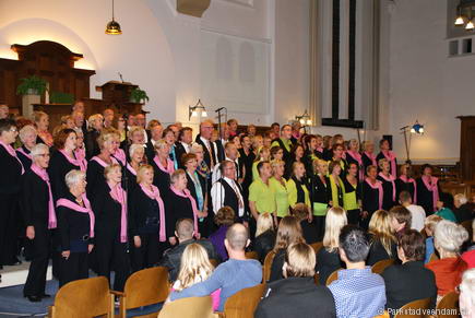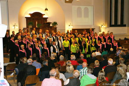 Het concert werd afgesloten door het bekende koor uit Sappemeer, Juicy lake! Zij zongen op een voortreffelijke wijze een aantal prachtige nummers uit hun uitgebreide repertoire. Dirigente van de 3 koren Ninke Sluiter-Ballema was apetrots op deze prestatie van formaat en een ovationeel applaus was haar beloning! De toegift, Conquest of paradise viel bij het publiek zeer in de smaak!