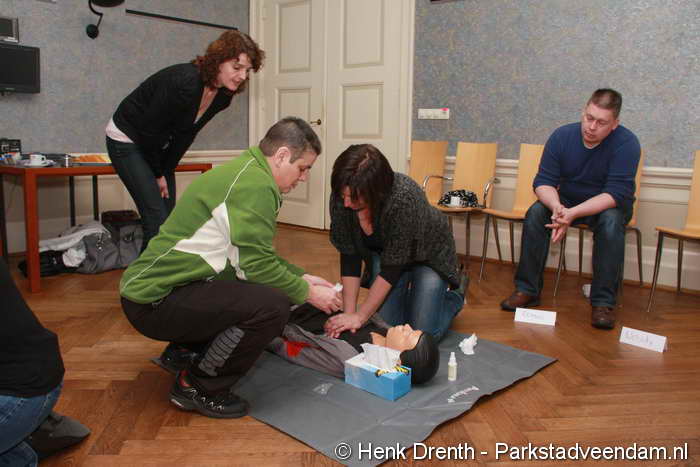 Zaterdagochtend werden verspreid door het gemeentehuis meerdere reanimatiecursussen gegeven. Ruim 60 inwoners van de gemeente Veendam kregen van deskundige instructeurs scholing in de reanimatie techniek en leerden tegelijk een AED (defibrillator) te bedienen.