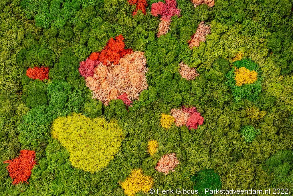 Over de mos en moswanden valt nog meer te vertellen. “Het mos komt dus uit Noorwegen en is als het ware gemummificeerd, het is een levend organisme tenslotte! Als die binnenkomt maak ik die eerst schoon. Dat is wat extra werk, maar het blijft dan veel langer mooi. Met een speciaal door ons zelf ontwikkelde lijm, die flexibel blijft en transparant is, lijmen we het mos op een ondergrond. Dat kunnen bijvoorbeeld panelen zijn. Op deze manier blijft het jaren goed, mits niet in de zon geplaatst. De staat van het mos is een indicatie voor het binnenklimaat bij bedrijven. Is het te droog, dan krijg je problemen met het mos en moet er iets aan de luchtvochtigheid gedaan worden. De moswanden zijn brandwerend gemaakt en zorgen voor een goede akoestiek.