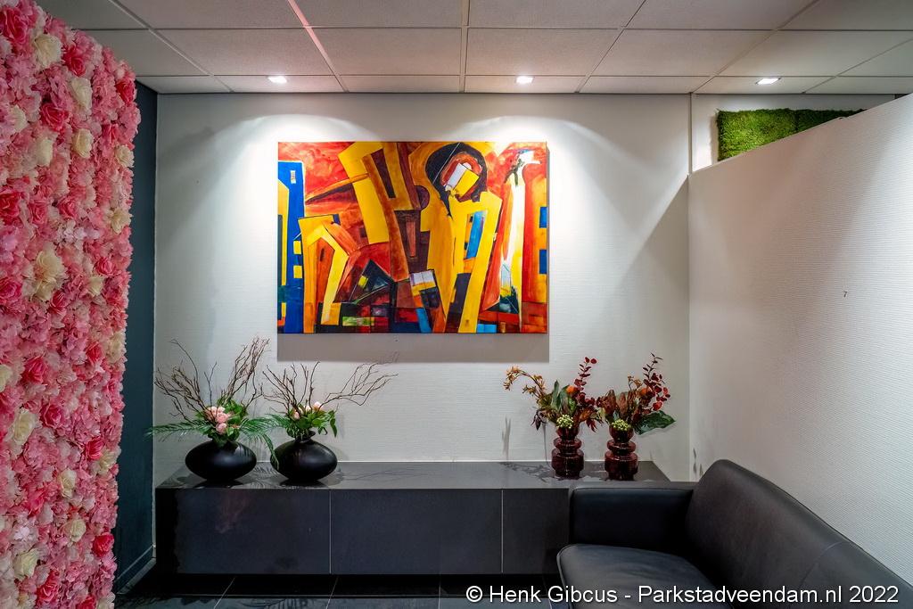 Als kind had ze dat al, altijd bezig met tekenen en schilderen. “Ik heb dat van mijn vader en oom geleerd,” vertelt ze met een glimlach. “Ik heb géén speciale opleiding hierin genoten, ben een échte autodidact.” Haar schilderijen exposeert ze met enige regelmaat. Zo was haar werk te bewonderen in de gemeentehuizen van Veendam én dat van Oude Pekela.