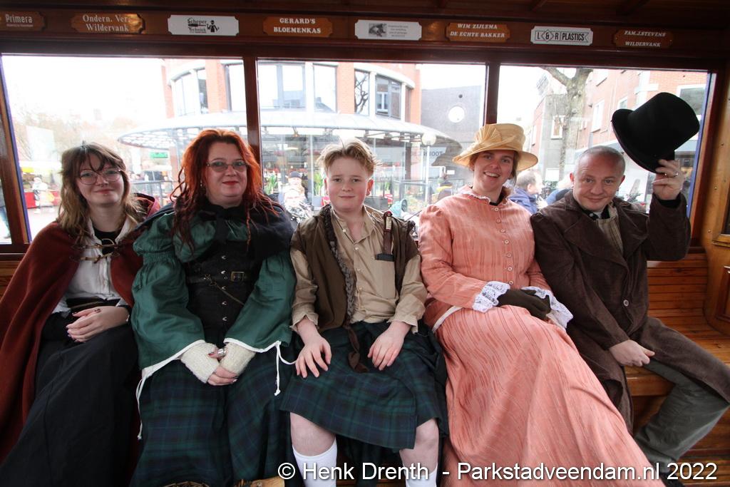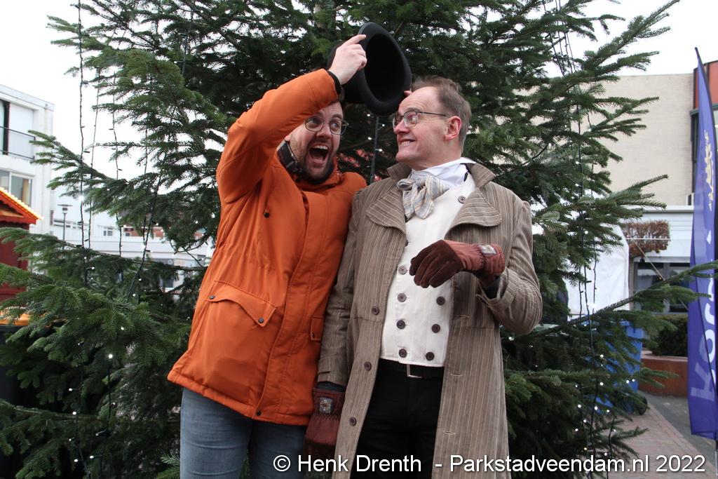Het was kort dag en liepen ze aanvankelijk nog gewoon rond, maar het volgende jaar worden er ook met rollenspellen sketches uitgevoerd. Maikel-Owen van Deest speelde alvast de hoofdpersoon Ebenezer Scrooge uit de roman A Christmas Carol uit 1843. Uit de reacties van het publiek is op te maken dat ze het leuk vinden. De verwachting is dat het volgend jaar ook bezoekers van buiten Veendam kan trekken.