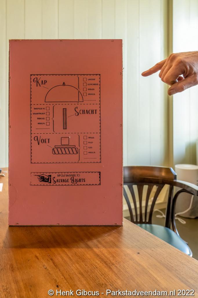 De meeste lampen verkoopt Martin Steeghs via zijn webshop www.salvagelights.nl De lampen worden in een speciale kist verpakt met opschrift “kap – schacht – voet.”