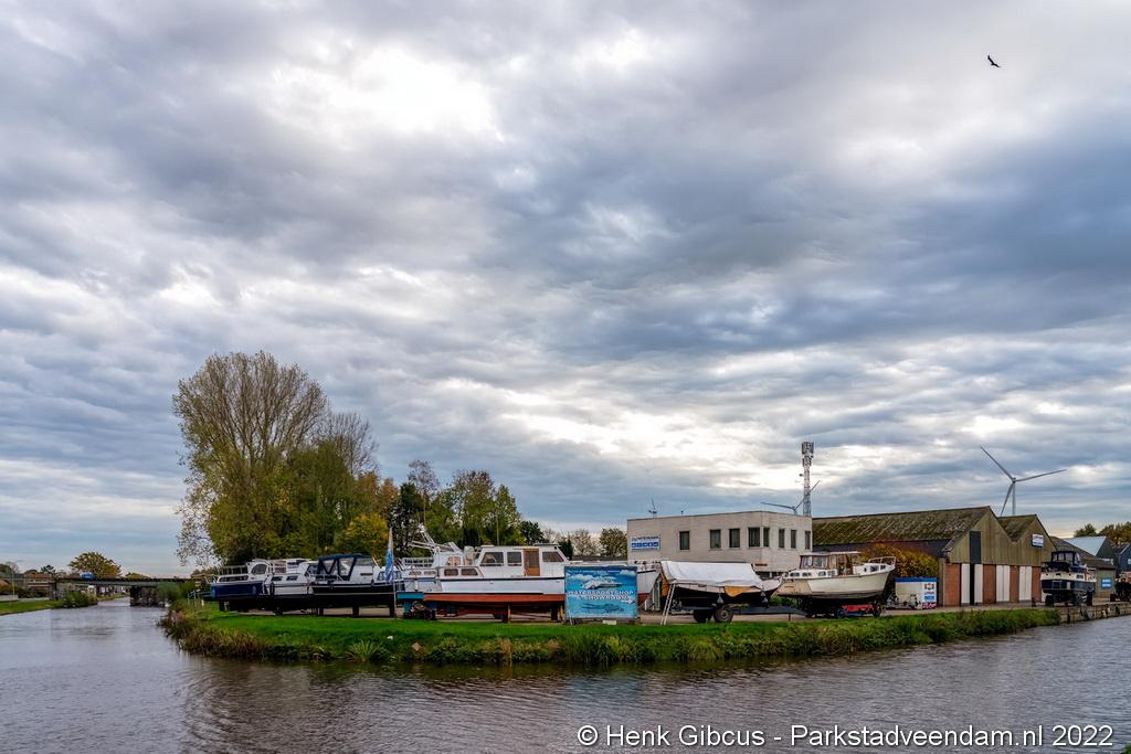 De jachthaven van Wildervank ligt grofweg tussen het Oosterdiep en het terrein van natuursteenbedrijf De Weijs.