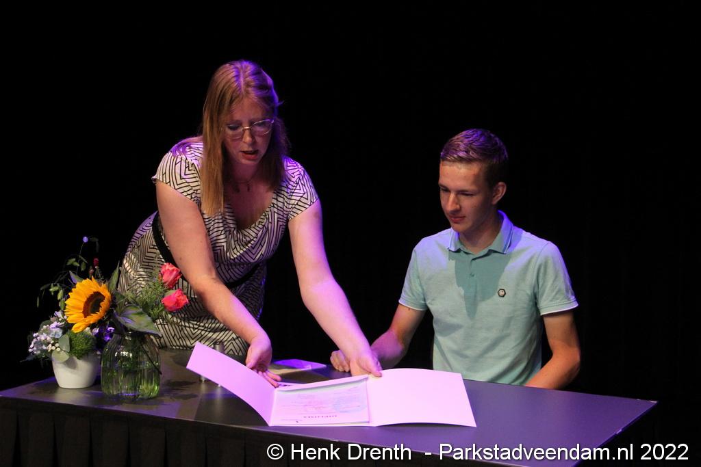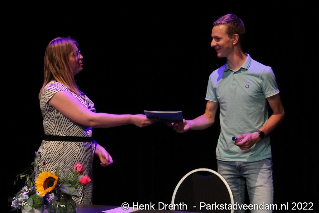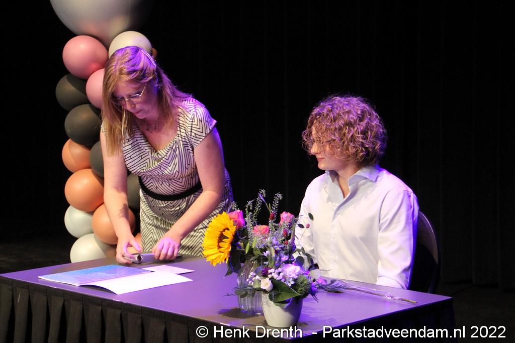 Net als vorig jaar hebben de leerlingen van de Winkler Prins hun diploma in de spotlights van het theaterpodium in ontvangst genomen. Na de diploma-uitreikingen in het eerste corona jaar in het stadion moest men ook in 2021 voor het tweede jaar op zoek naar een alternatief. Dat in het theater gevonden werd om de leerlingen voor een keer letterlijk in het spotlight te zetten.