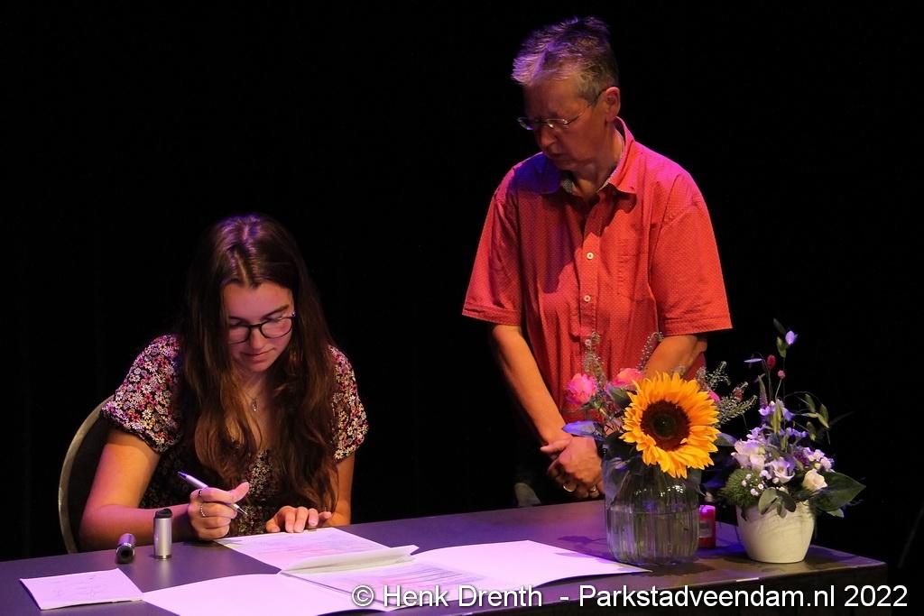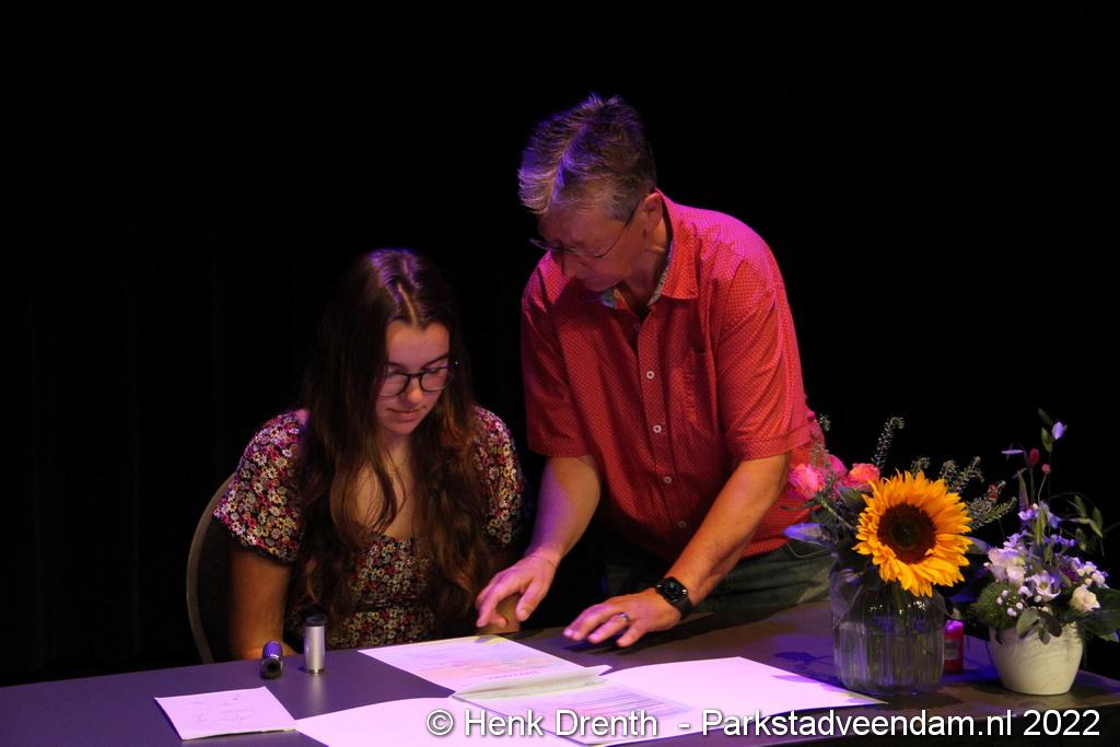 Bij elke leerling werd een kort praatje gehouden over de behaalde resultaten, waarna zij hun eigen diploma of certificaat konden ondertekenen.