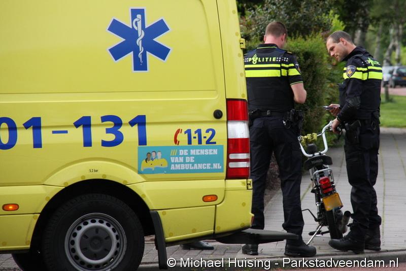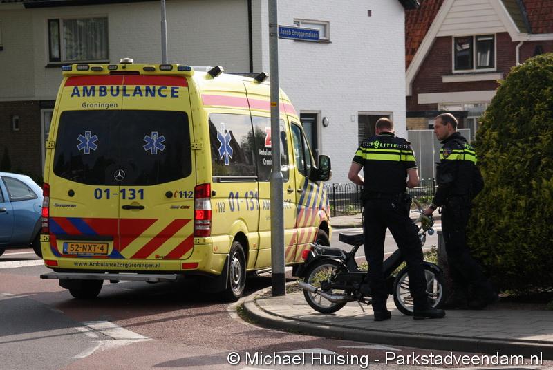 JACOB BRUGGEMALAAN - Maandag aan het begin van de avond is een brommer door onbekende oorzaak achter op een auto gebotst. Dit gebeurde bij de rotonde van de F.J. de Zeestraat en de Jacob Bruggemalaan. De bestuurder van de brommer werd in een ambulance onderzocht, maar hoefde niet mee naar het ziekenhuis. De bestuurster van de auto kwam met de schrik vrij en kon enige tijd later haar weg vervolgen.