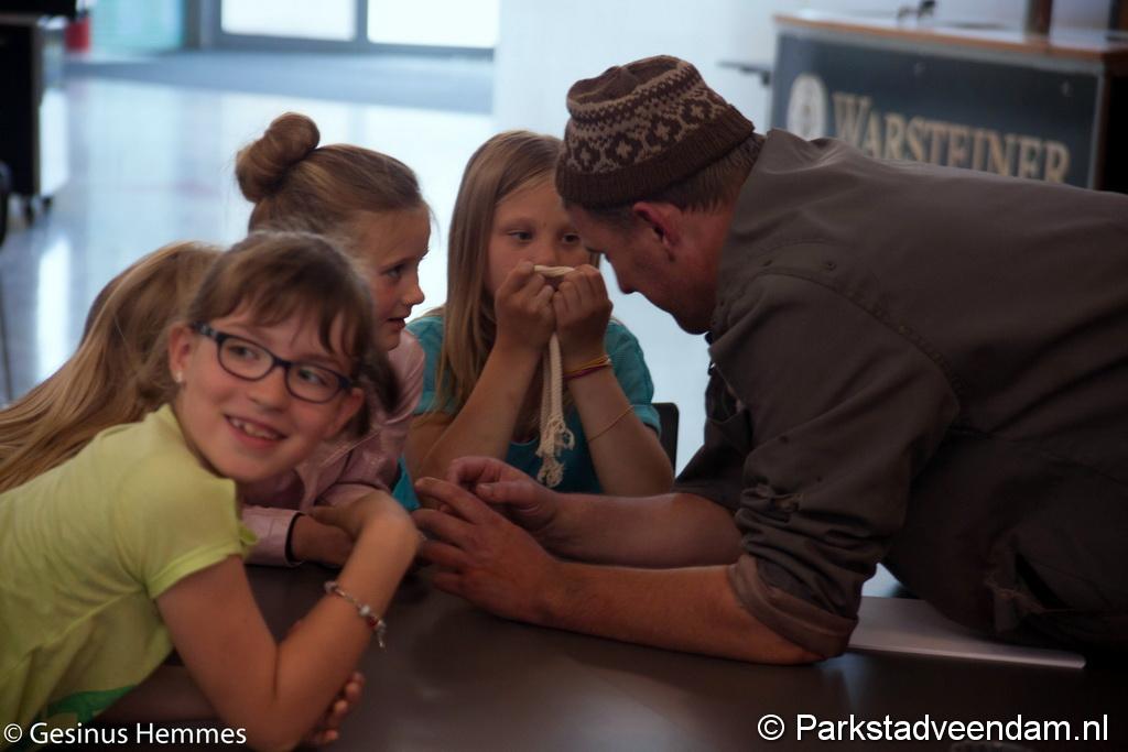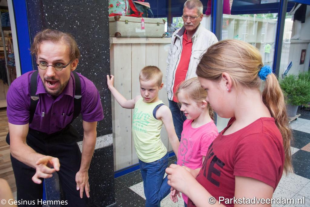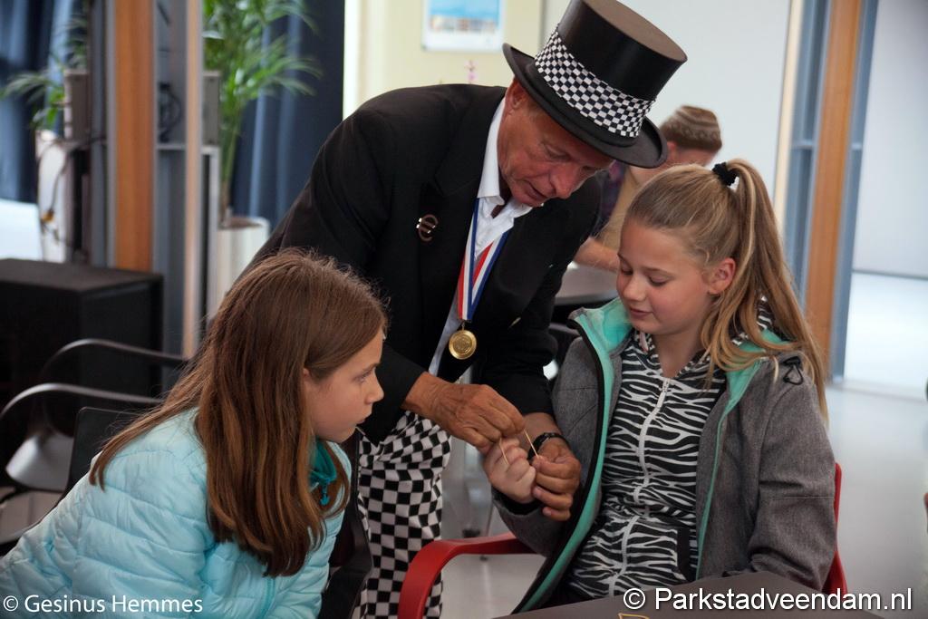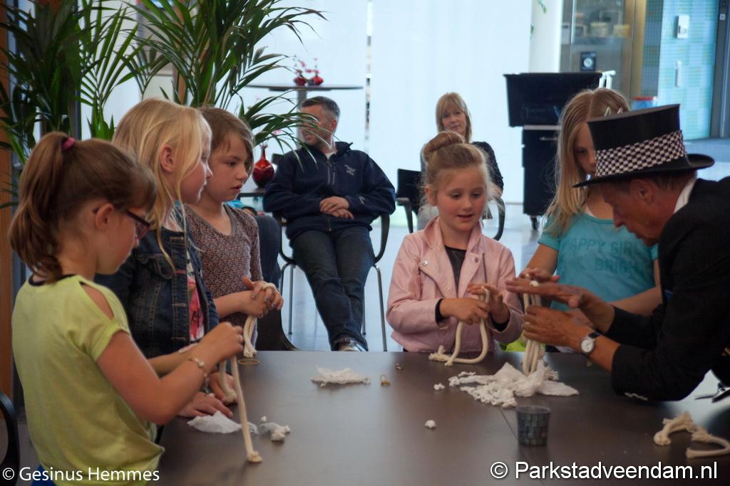 Na afloop kregen de winnaars van de zoektocht naar de goochelattributen in de etalages nog een mini-workshop in vanBeresteyn.
