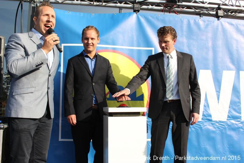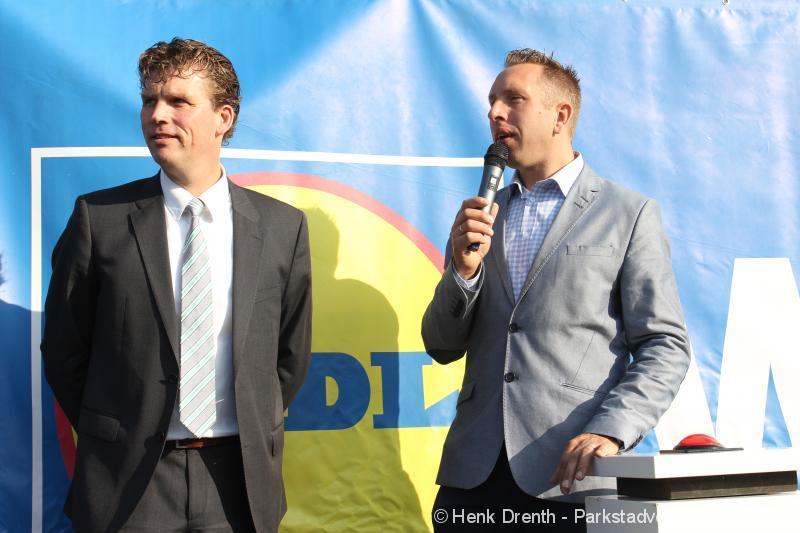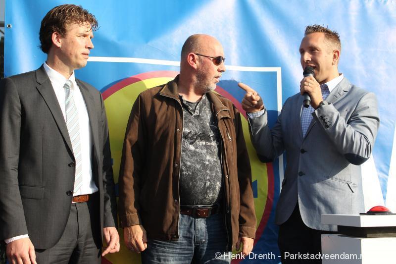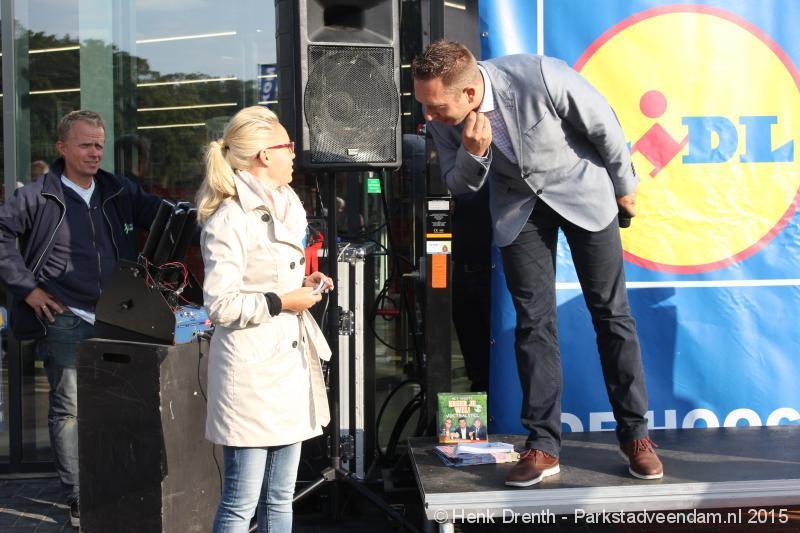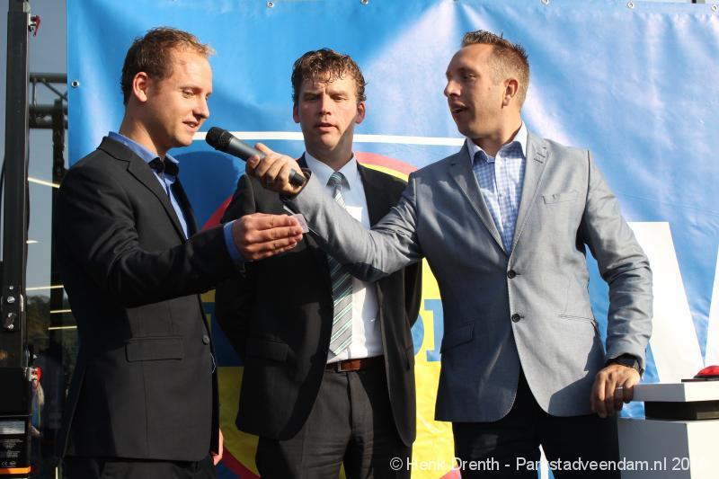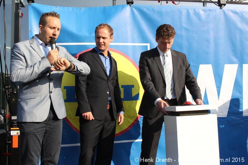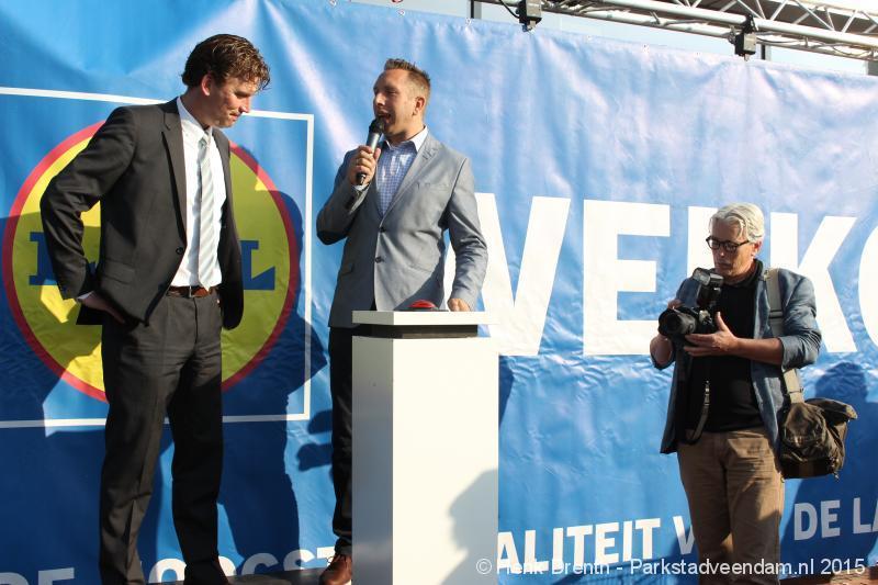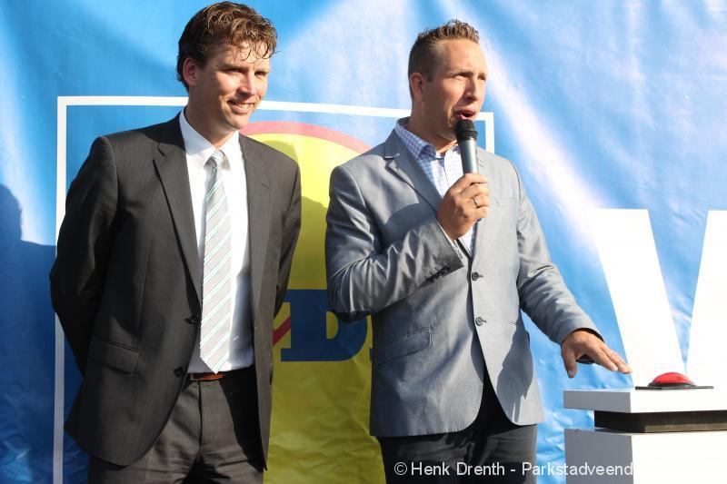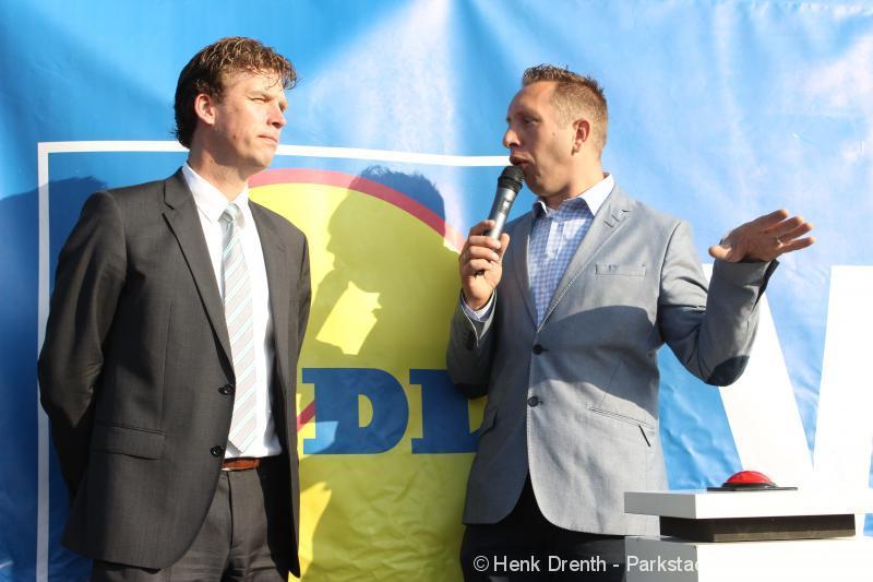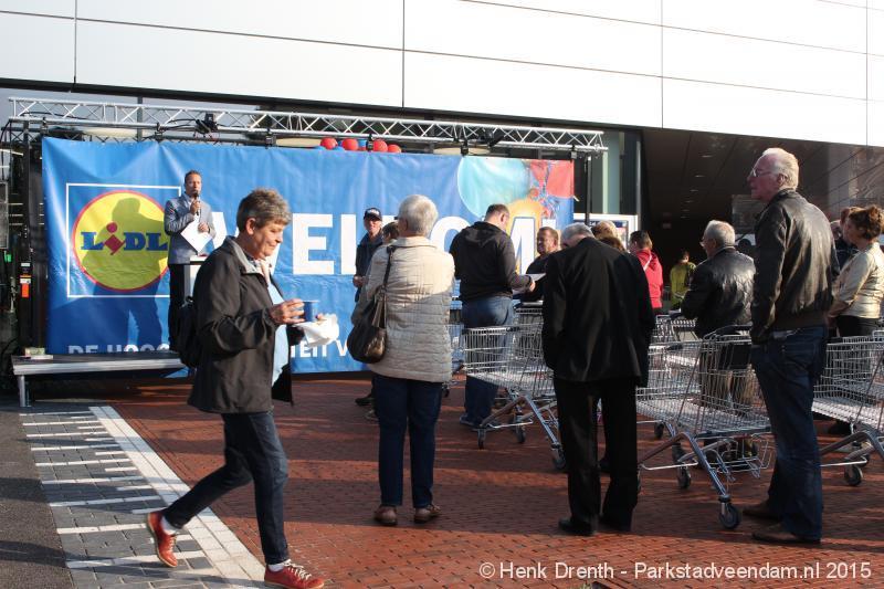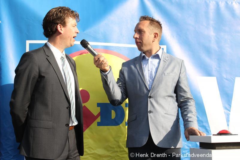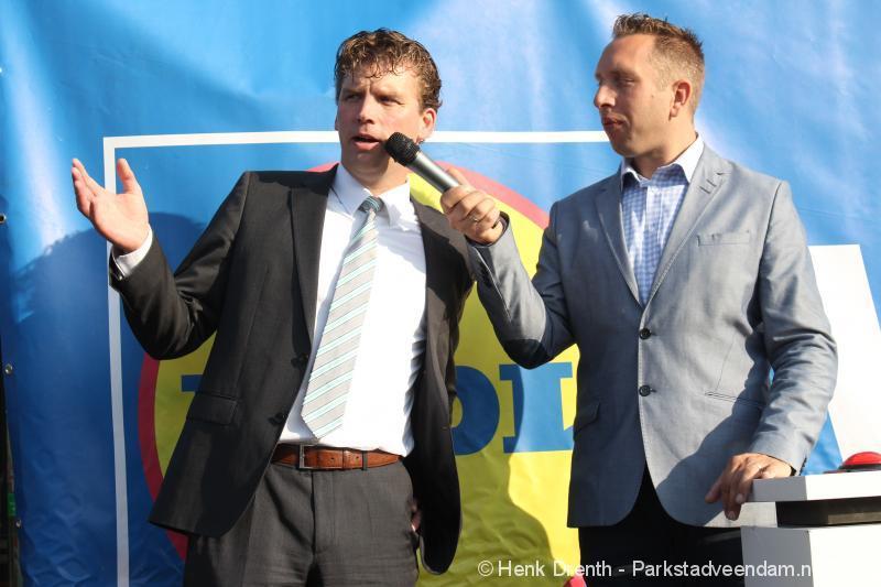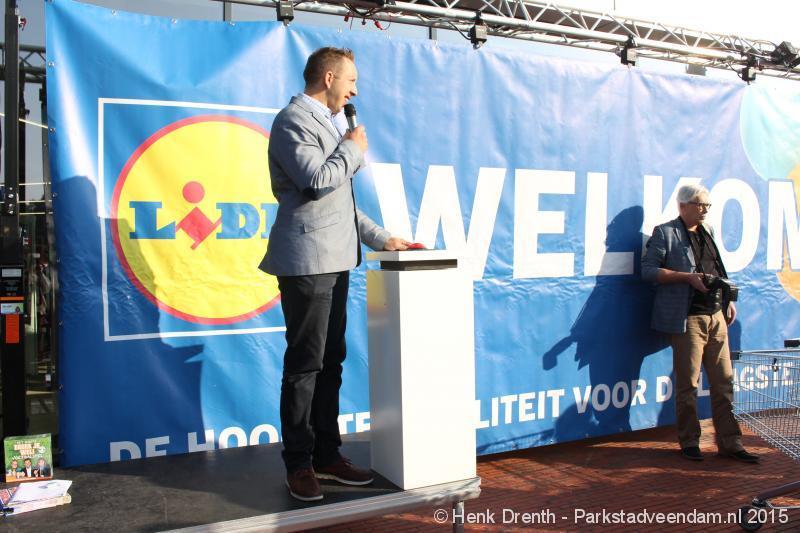OPENING - Vanmorgen heeft Oscar Lap, de filiaalhouder van de nieuwe Lidl aan de J.G. Pinksterstraat, de eerste klanten verwelkomt. Vanaf 8.30 stonden er ruim 300 mensen klaar met de winkelwagens in de startblokken. Tot tien voor negen werden er loten uitgedeeld waarmee 1 minuut gratis winkelen was te winnen. Er zijn ruim 200 loten uitgedeeld. Zwanet en Bennie Wijnsema uit Veendam waren de gelukkigen. Na de 1 minuut gratis winkelen werd iets voor negen uur de winkel officieel geopend. Wethouder Henk Jan Schmaal verrichtte samen met Oscar Lap deze handeling door een rode knop in te drukken. René de Koff was de speaker tijdens de opening.