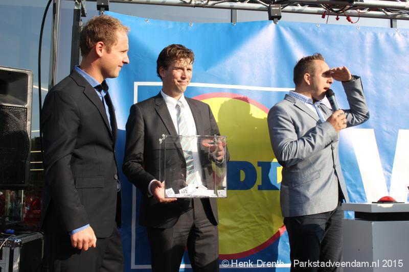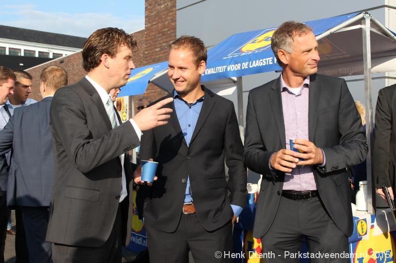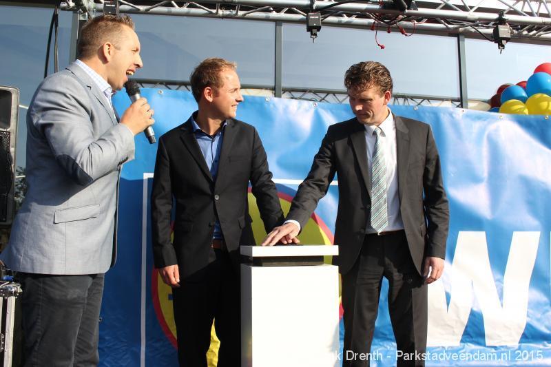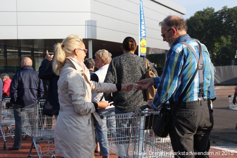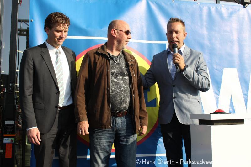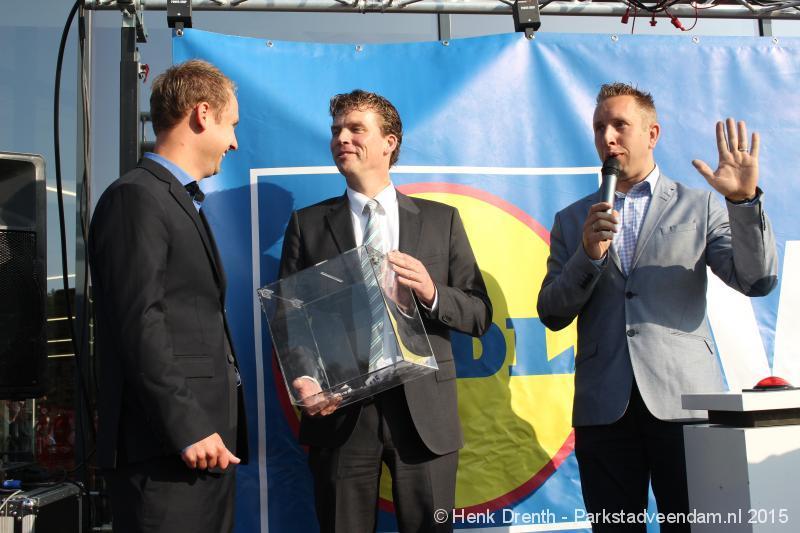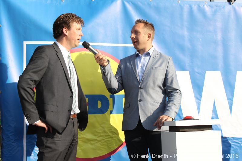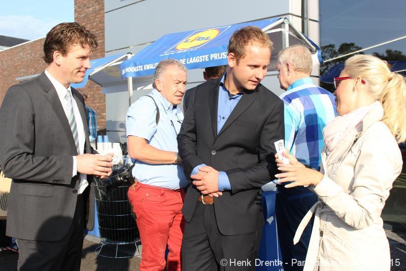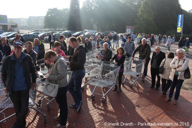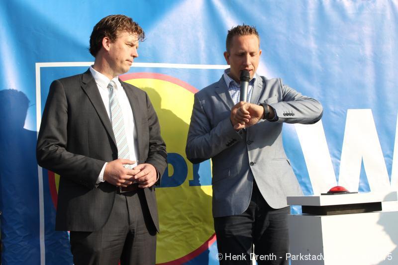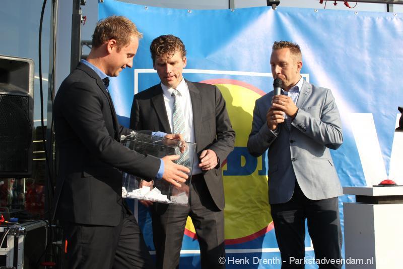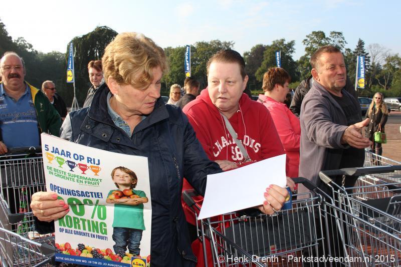 OPENING - Vanmorgen heeft Oscar Lap, de filiaalhouder van de nieuwe Lidl aan de J.G. Pinksterstraat, de eerste klanten verwelkomt. Vanaf 8.30 stonden er ruim 300 mensen klaar met de winkelwagens in de startblokken. Tot tien voor negen werden er loten uitgedeeld waarmee 1 minuut gratis winkelen was te winnen. Er zijn ruim 200 loten uitgedeeld. Zwanet en Bennie Wijnsema uit Veendam waren de gelukkigen. Na de 1 minuut gratis winkelen werd iets voor negen uur de winkel officieel geopend. Wethouder Henk Jan Schmaal verrichtte samen met Oscar Lap deze handeling door een rode knop in te drukken. René de Koff was de speaker tijdens de opening.