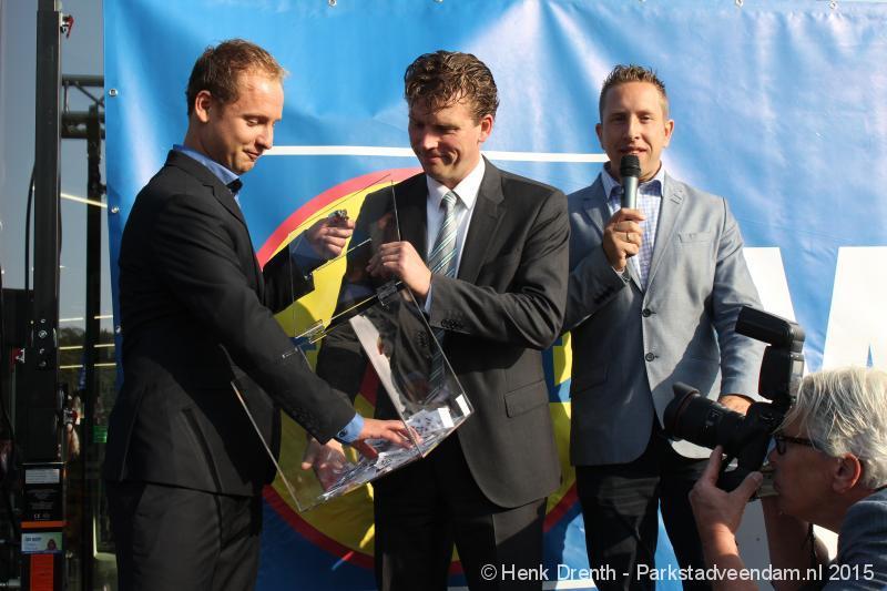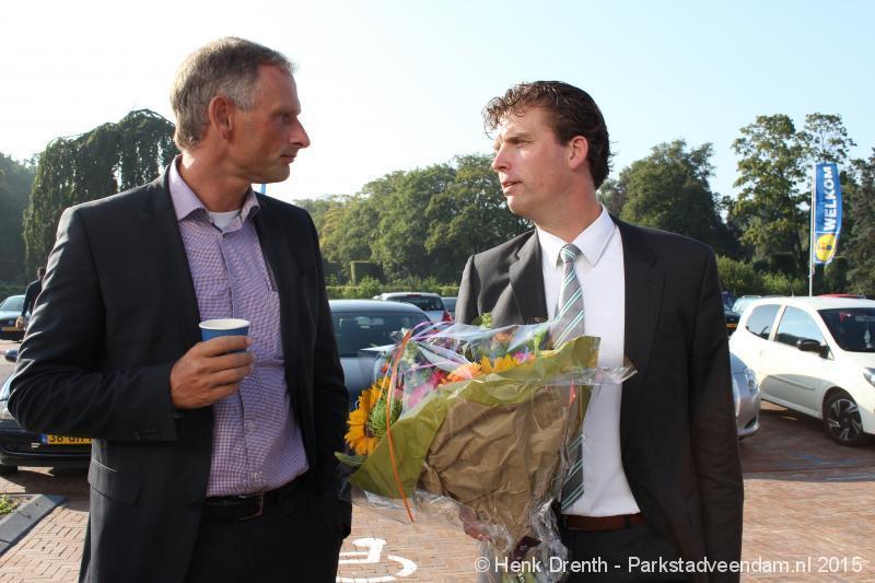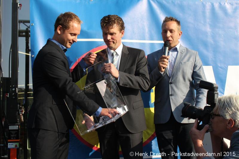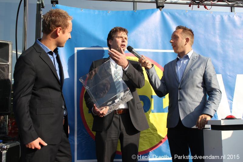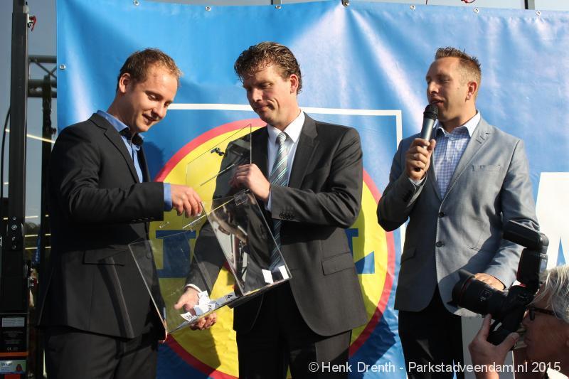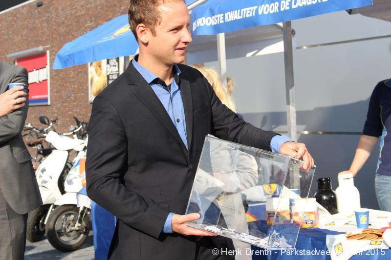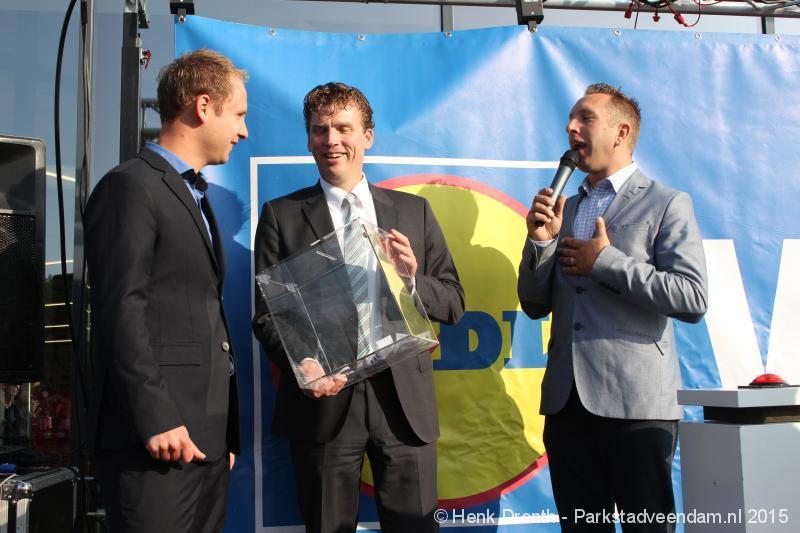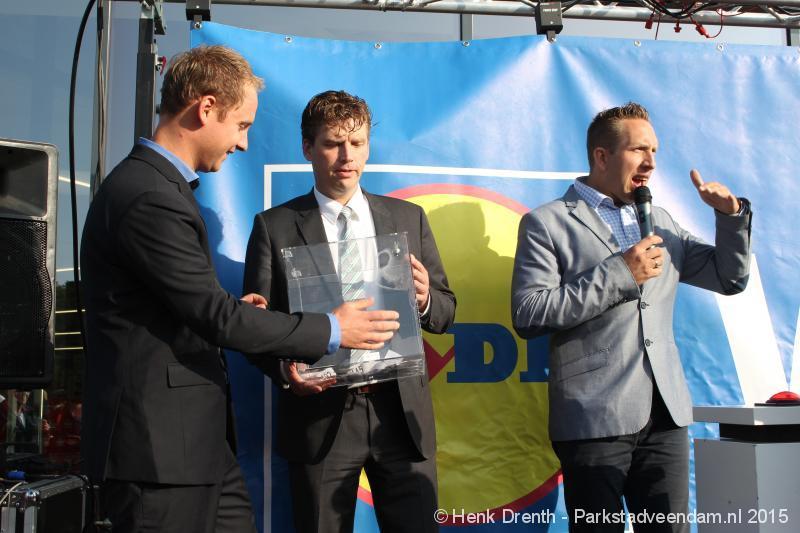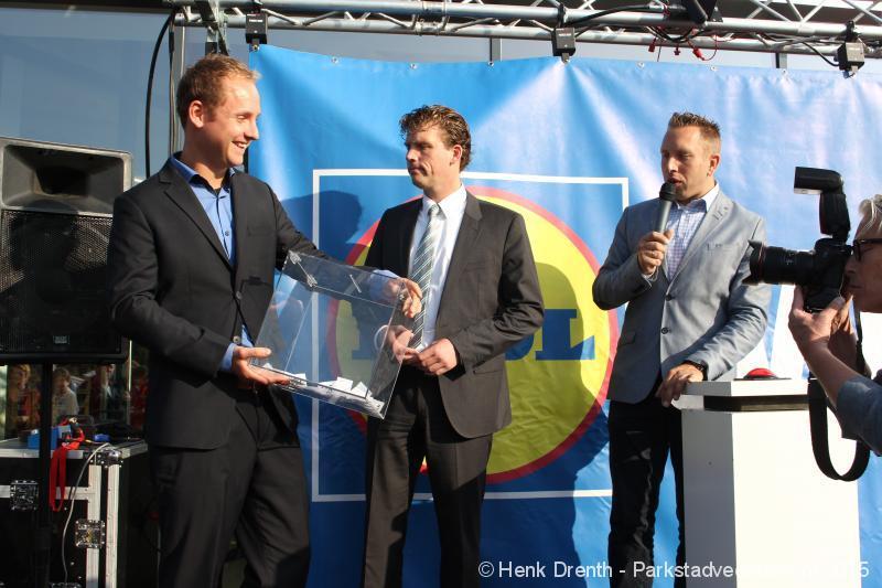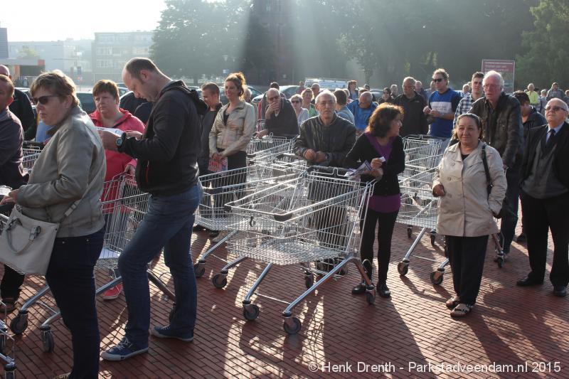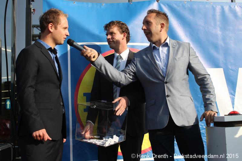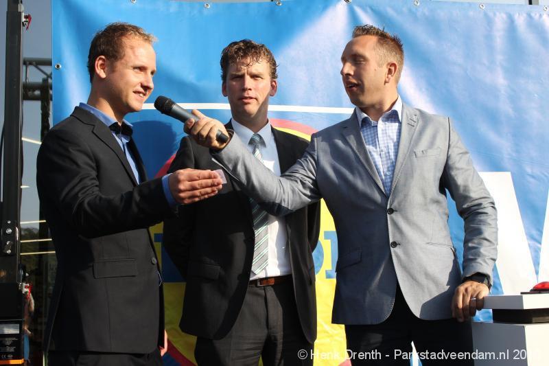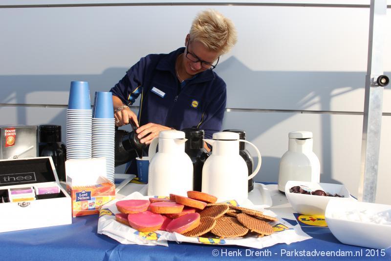 OPENING - Vanmorgen heeft Oscar Lap, de filiaalhouder van de nieuwe Lidl aan de J.G. Pinksterstraat, de eerste klanten verwelkomt. Vanaf 8.30 stonden er ruim 300 mensen klaar met de winkelwagens in de startblokken. Tot tien voor negen werden er loten uitgedeeld waarmee 1 minuut gratis winkelen was te winnen. Er zijn ruim 200 loten uitgedeeld. Zwanet en Bennie Wijnsema uit Veendam waren de gelukkigen. Na de 1 minuut gratis winkelen werd iets voor negen uur de winkel officieel geopend. Wethouder Henk Jan Schmaal verrichtte samen met Oscar Lap deze handeling door een rode knop in te drukken. René de Koff was de speaker tijdens de opening.