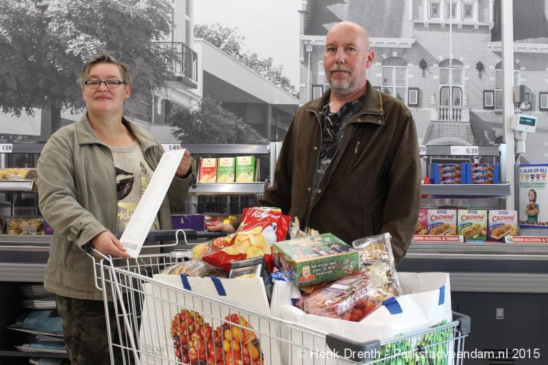 Prijswinnaars Zwanet en Bennie hadden voor de 1 minuut gratis winkelen tijdens de kennismakingsavond de winkel al goed verkend om te zien waar ze moesten zijn. Zwanet had de afgelopen nacht al gedroomd dat ze gratis aan het winkelen was. Bennie had bij het uitgedeeld krijgen van het lootje al gezegd dat dit ‘m is. Hij had er een heel goed gevoel over. Ze kregen alle hulp van het personeel. In de winkelwagen kwamen diverse boodschappen voor 134,80 euro te liggen. Thuis wilden ze eerst even controleren wat ze allemaal in hadden geslagen om geen dubbele boodschappen thuis te krijgen.