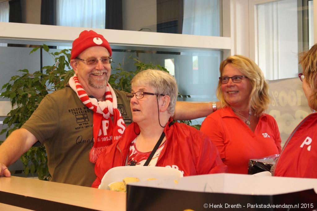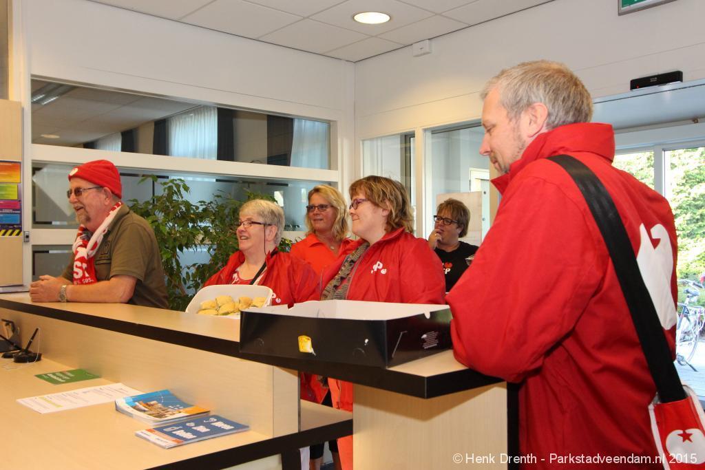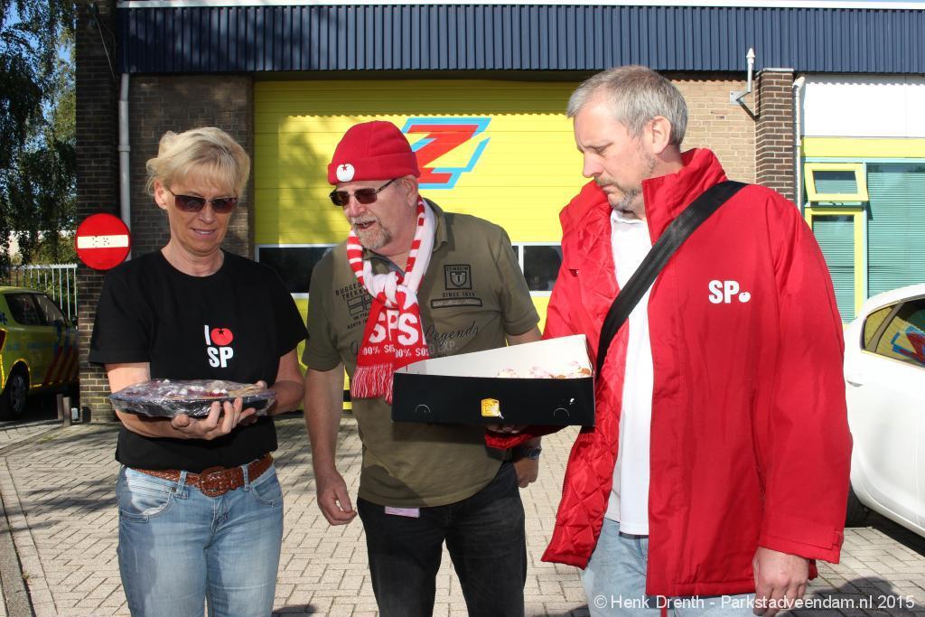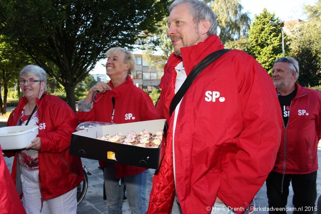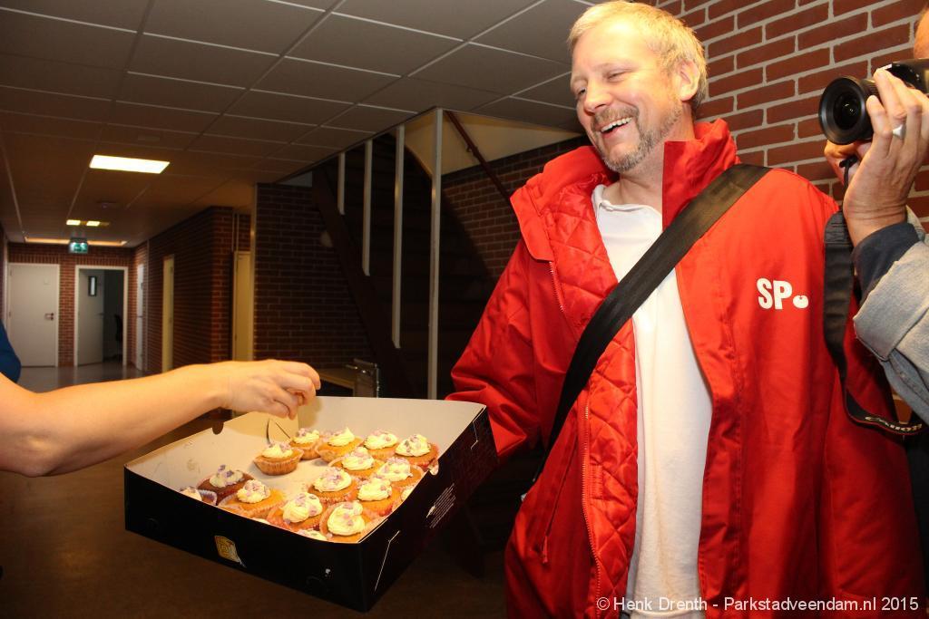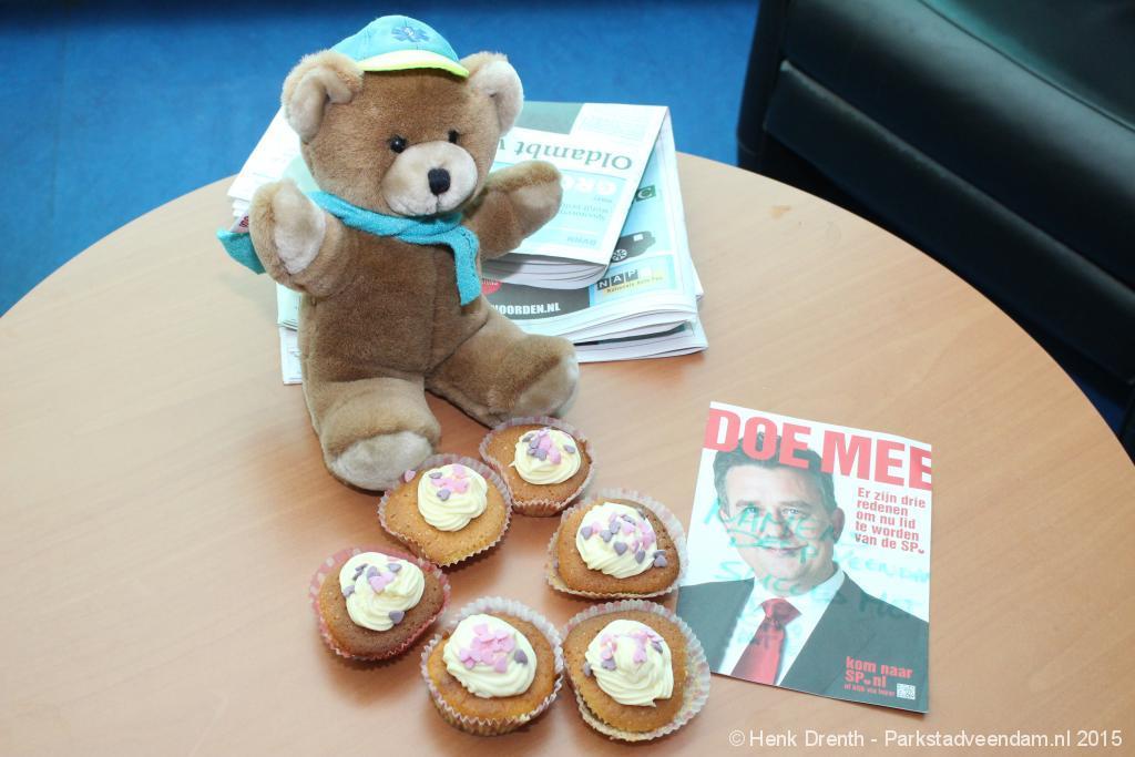De SP toog met 11 mensen vanaf het Jan Salwaplein naar het politiebureau in Veendam, waar de lekkernijen werden uitgedeeld. Bij de ambulancedienst was er blijkbaar een uitruk. Maar een brandweerfunctionaris van de buren was zo vriendelijk om even de deuren te openen om de cupcakes met een briefje achter te kunnen laten.