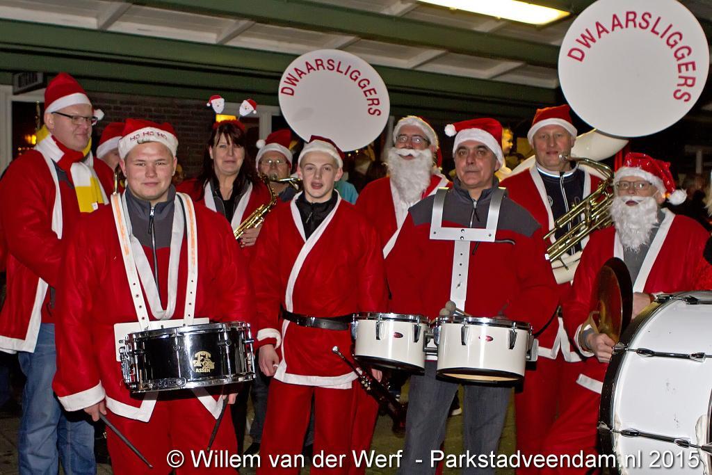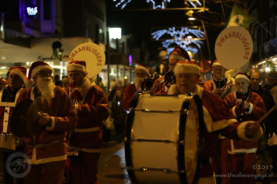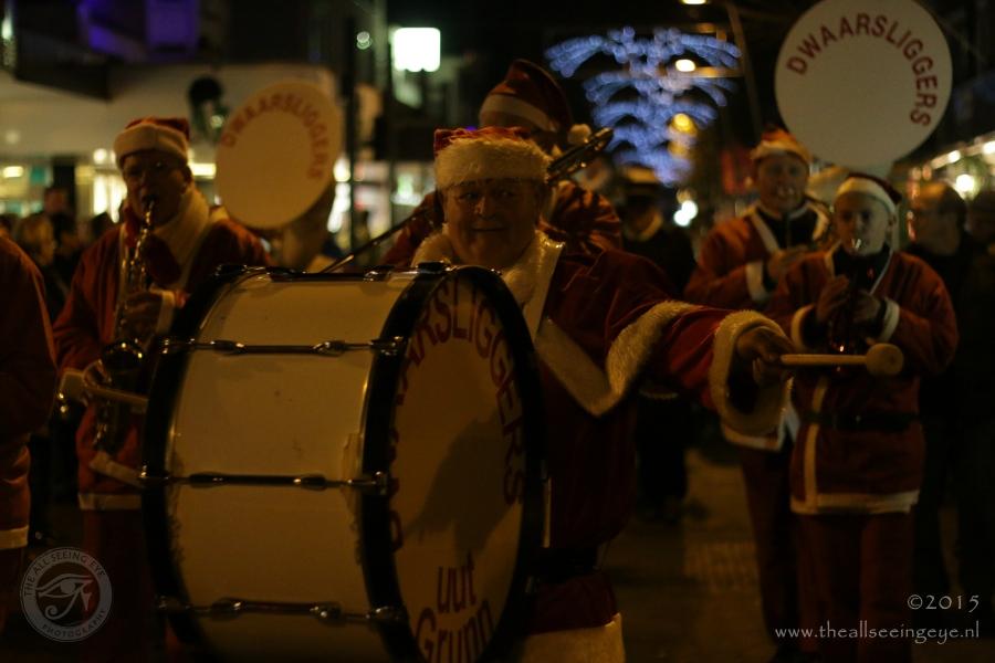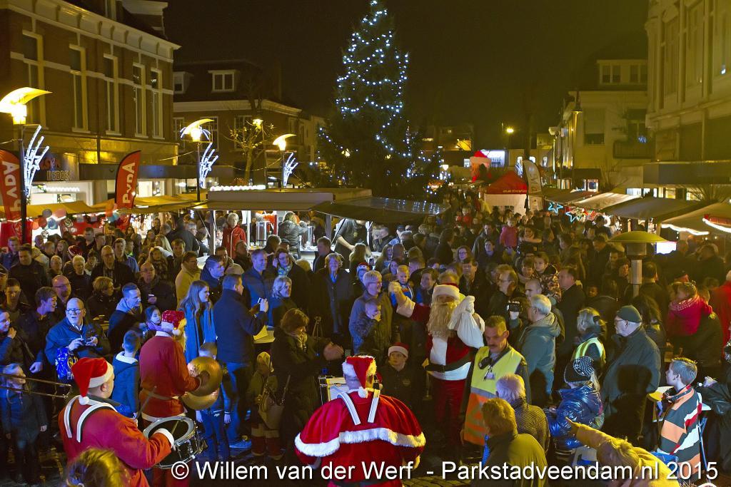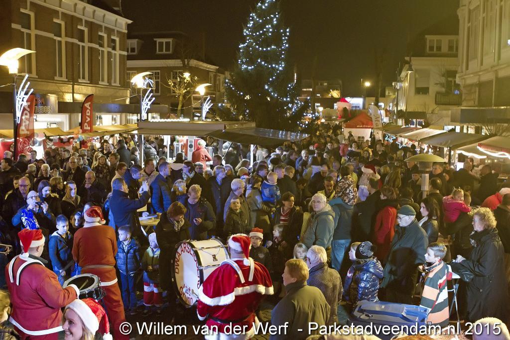 CENTRUM - De charme van feestelijke kerstkraampjes, muziek van de Winkler Prins Harmonie en de intocht van de Kerstman in het centrum van Veendam, het was een schot in de roos zaterdagavond. Schitterende lichtjes en prachtige kleuren, feestelijk klanken en verleidelijke geuren. Het kon niet op! Met tropische temperaturen voor deze tijd van het jaar en dat zorgde zelfs voor goed bezette terrassen.