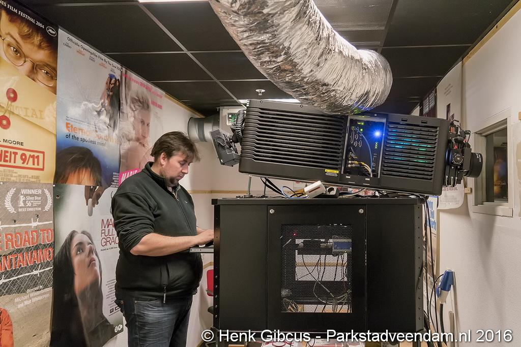 De films worden meestal ’s nachts gedownload, in verband met de grootte van de bestanden. Het inlezen kost erg veel tijd en is soms best wel spannend. Het gaat gepaard met verschillende beveiligingscodes/sleutels. In de technische ruimte staan grote apparaten (kasten) waarin dit alles plaatsvindt. Van daaruit wordt ook de film overgebracht op het gigascherm over de volle breedte van de zaal.