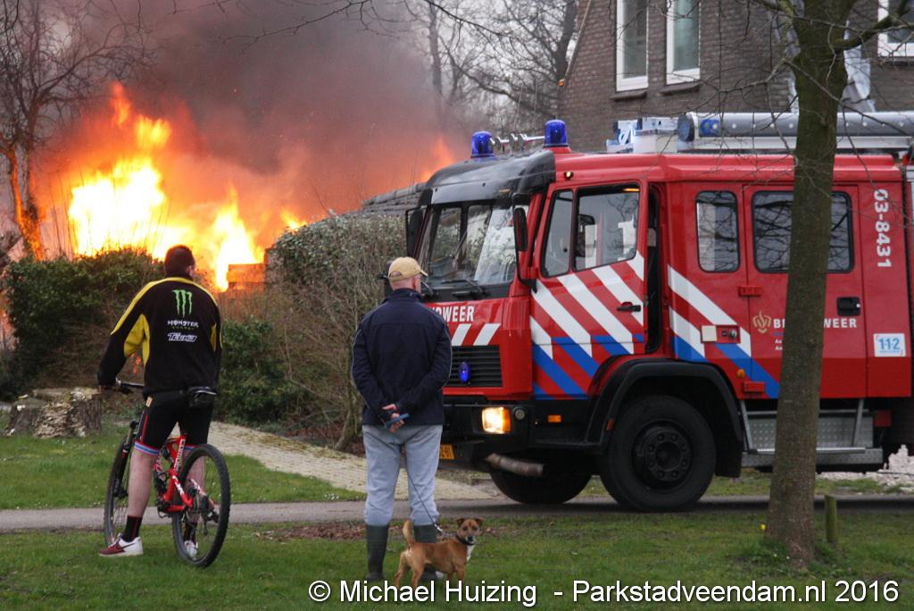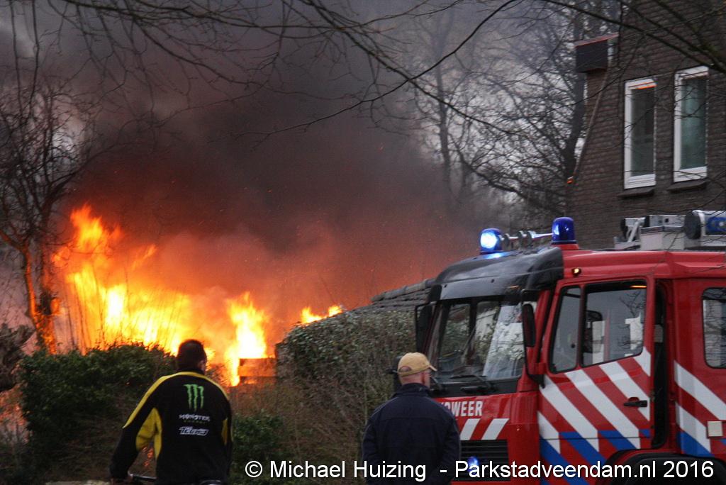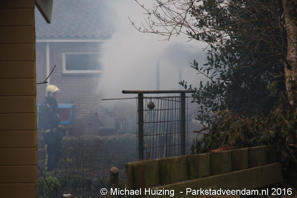 ANNERVEENSCHEKANAAL - Zondagmorgen werd er rond 07.50 uur een woningbrand gemeld aan de Eppinge in Annerveenschekanaal. Zwarte rookwolken waren al van verre te zien. Ter plaatse bleek niet de woning maar een overkapping/fietsschuurtje achter de woning in brand te staan. Brandweer Annen wist met behulp van twee hoge druk stralen de brand snel onder controle te krijgen. Even later was ook de tankwagen van Gieten ter plaatse. Hoe de brand is ontstaan is niet bekend, de bewoners waren niet thuis