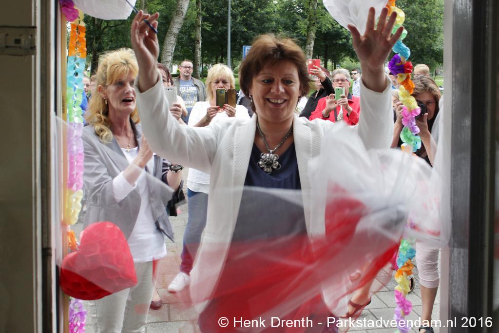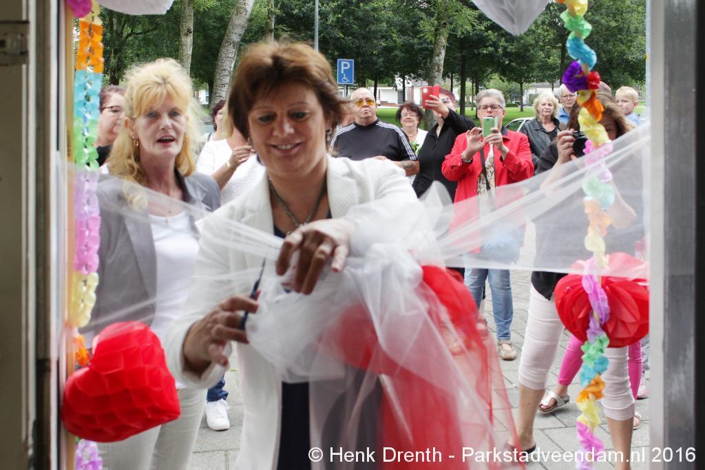 OPEN - Maandagmiddag was het eindelijk zover, om twee uur werd het felbegeerde pand van het Uitdeelpunt geopend. Door niemand minder dan Lucas en Gea. Voor Jannie Orsel was het een enorme ontlading van spanning over de afgelopen 4 jaar dat ze ermee bezig is geweest. Zij hield ook een toespraak, en normaal heeft ze haar woordje wel klaar. Maar gistermiddag was Jannie er even helemaal stil van, ze was zichtbaar aangedaan. Maar met een arm om de schouder van Gea Hulshof ging het uiteindelijk toch goed. Lucas hield ook een toespraak, hij vertelde het een emotioneel moment te vinden omdat er zoveel meer gebeurd dan in een gemiddelde kringloopwinkel. Gea knipte het lint door.