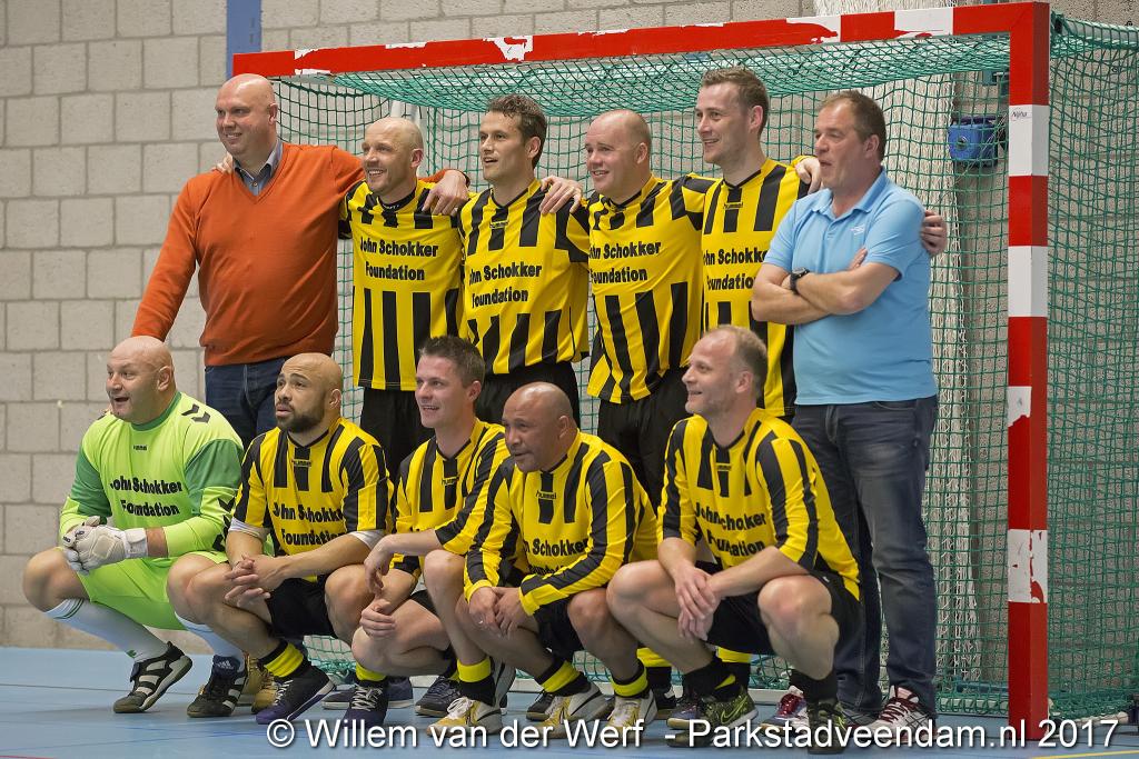 Ze straalden niet alleen op de roemruchte Langeleegte maar ook in de Parkstadhal in Veendam. En terecht want de oud-voetballers wilden graag de jongere garde voetballers een podium bieden voor een carriere als betaald voetballer. En de tegenstander was uitzendbureau Werkmax.