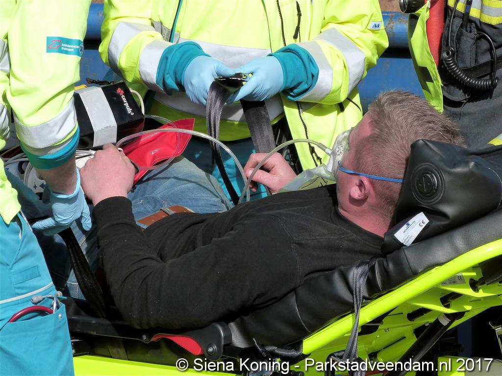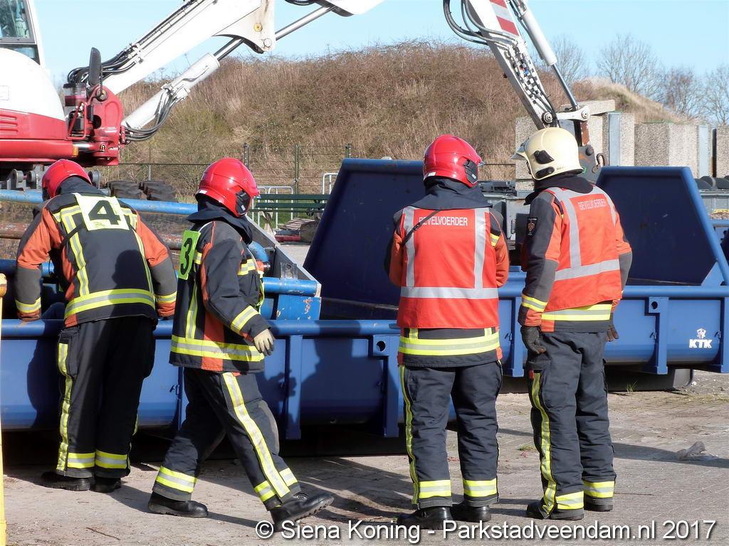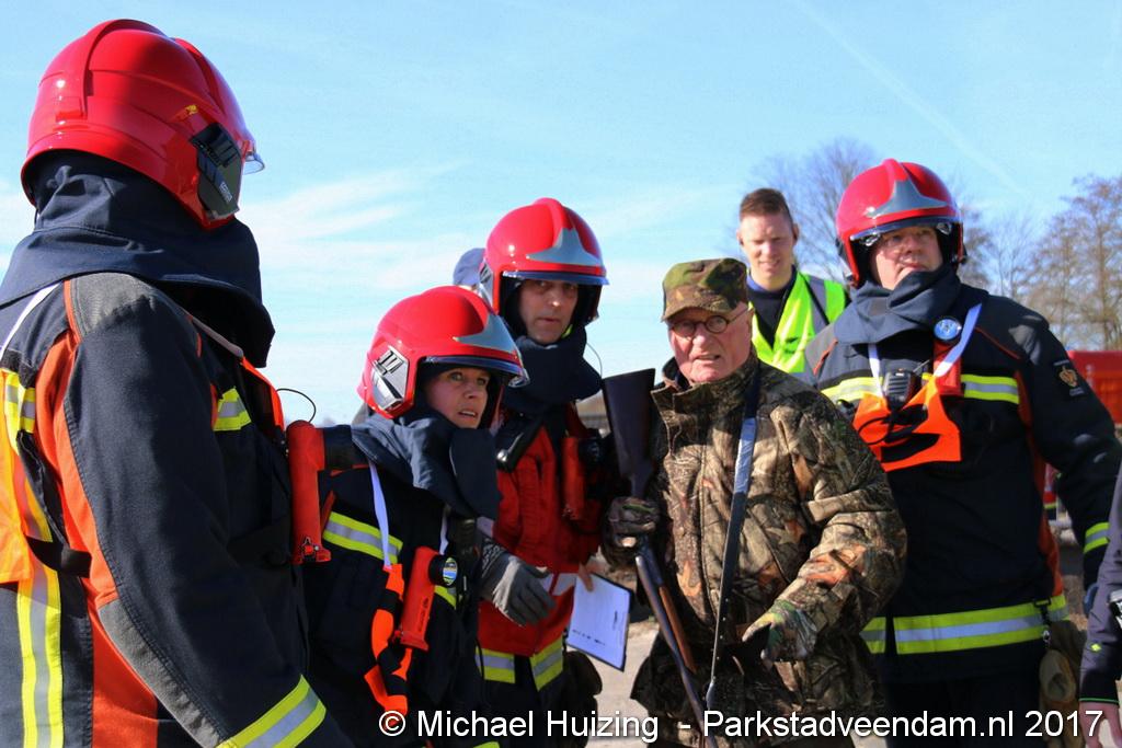 112 baan - Hier werd een gemeente medewerker aangetroffen die met een been bekneld lag onder een container. Naast de TS kwam er ook een HV ter plaatse. Tijdens het bevrijden van dit slachtoffer klinken er na enige tijd een aantal schoten van een jager. Door deze knallen schrikt een andere medewerker van de gemeente die bezig was een vijzel schoon te maken en raakt hierin bekneld. Vervolgens moet dit slachtoffer ook worden bevrijdt.