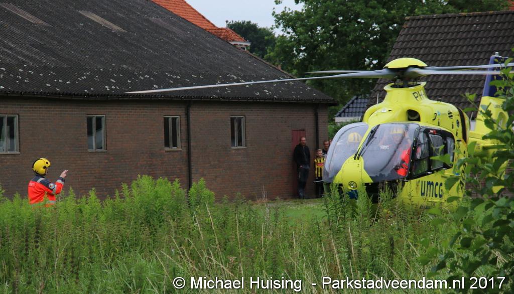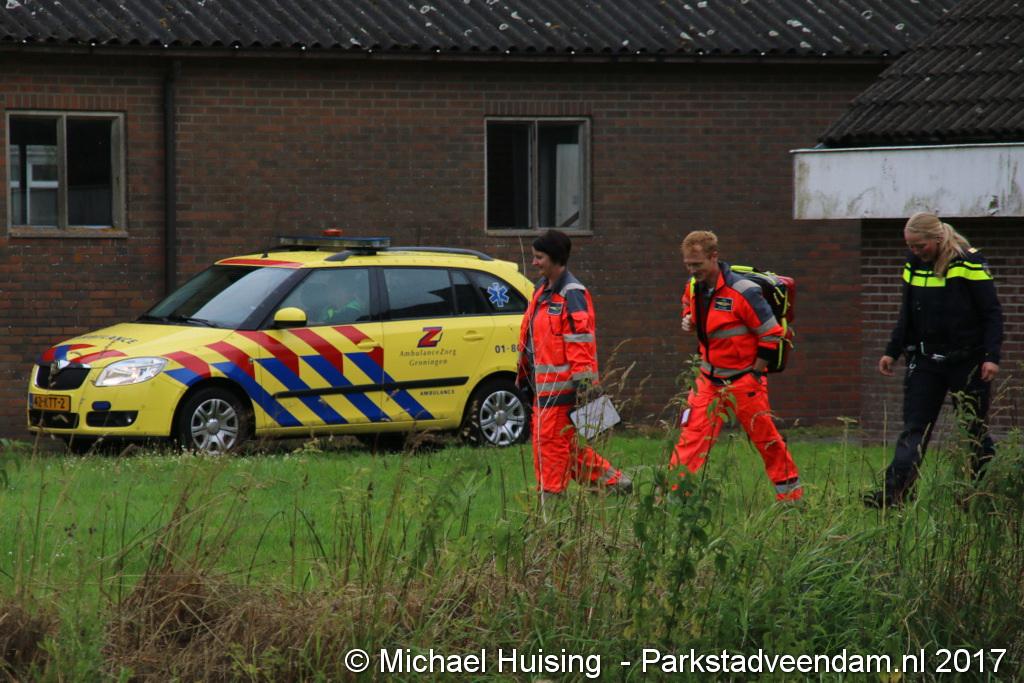 Maandag aan het einde van de middag moesten politie, brandweer en ambulance uitrukken naar de Beneden Westerdiep in Veendam. In eerste instantie leek de situatie ernstig waarop ook de traumahelikopter ter plaatse kwam. Na een tijdje kon de bewoner met behulp van de hulpdiensten zelf naar beneden komen. Volgens ooggetuigen is de man vervolgens in de boeien geslagen en meegenomen naar het politiebureau. Niet veel later stond de straat vol met politiewagens. Een onderzoek in de woning werd opgestart. Ook de Explosieven opruimingsdienst van Defensie werd opgeroepen.