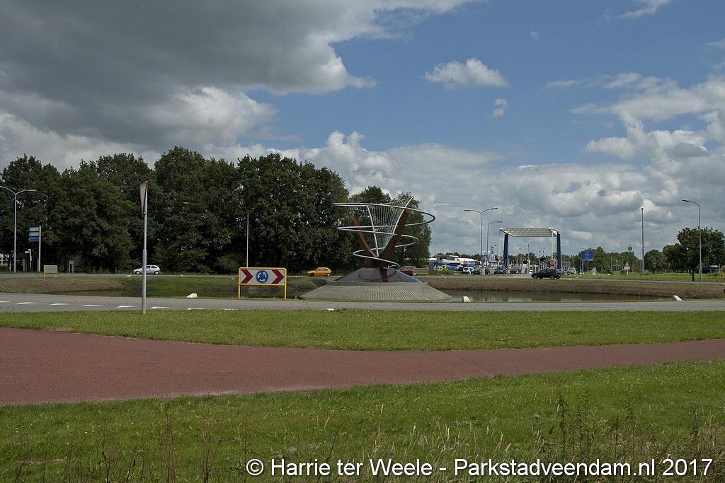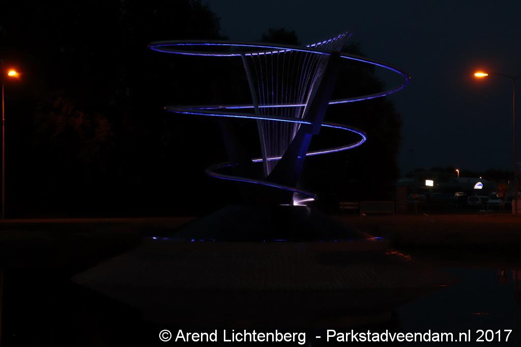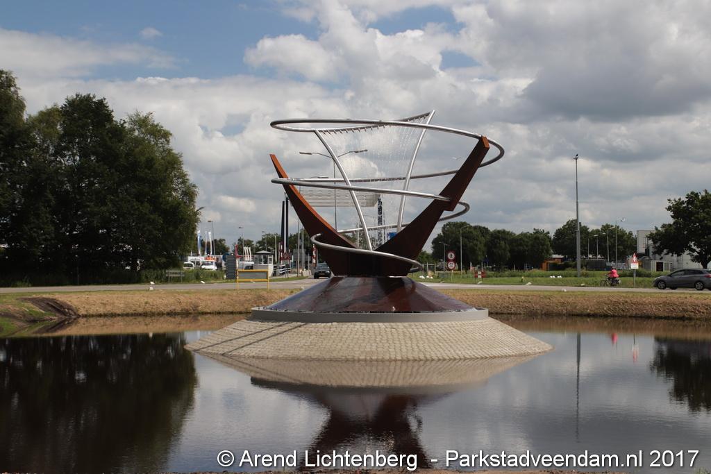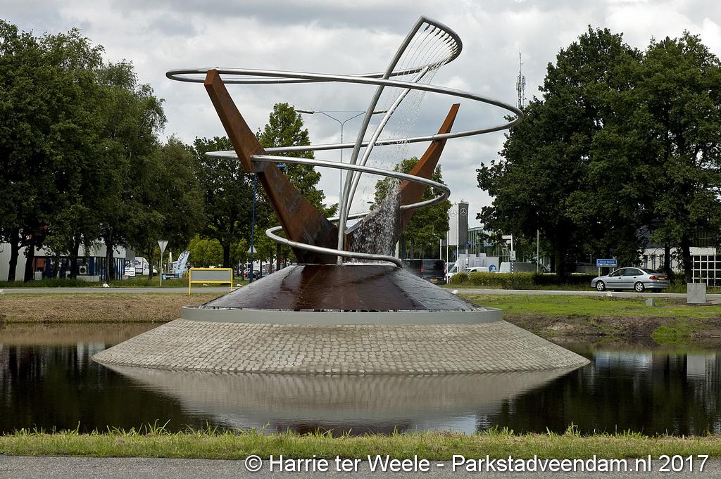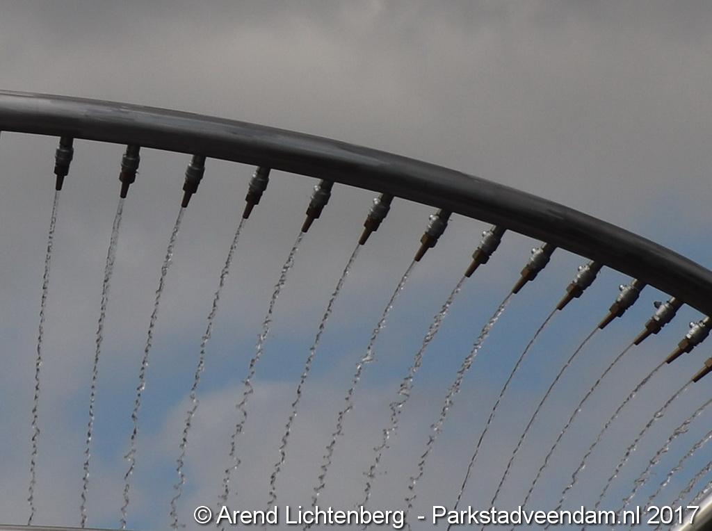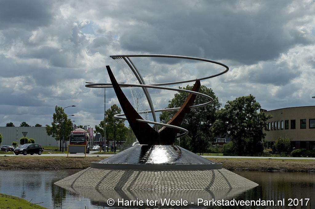 Het kunstwerk bestaat uit twee staanders van cortenstaal (Ooster- en Westerdiep) die een spiraal van roestvrij staal omarmen (Oude Ae) waaruit water valt. Het stalen kunstwerk en het water worden ’s avonds verlicht. Het is ontworpen door een medewerker van de gemeente Veendam, de heer Rob Oost. De gemeente heeft samen met specialisten het ontwerp uitgewerkt. De werkzaamheden zijn uitgevoerd door regionale bedrijven, namelijk Fonteintechniek Gruppen B.V., Luttjeboer B.V., Aannemingsbedrijf Koen Meijer B.V. en A&I Kwant adviseurs & ingenieurs.