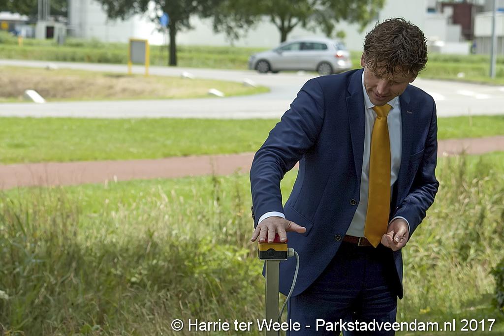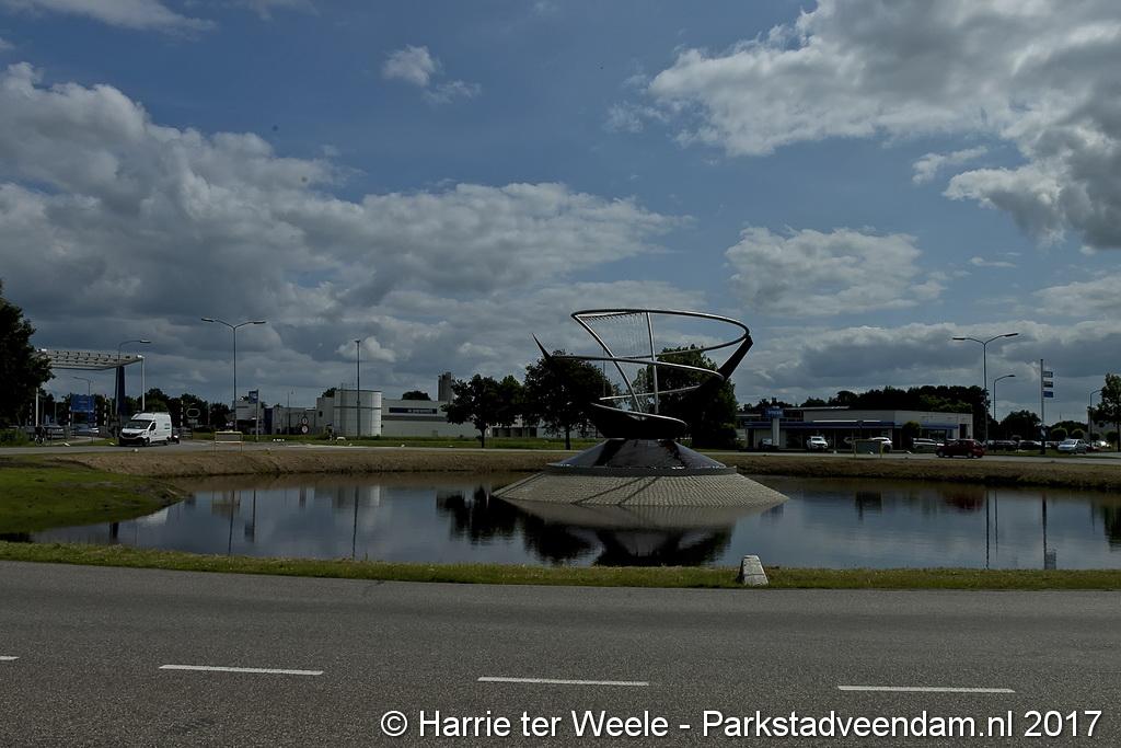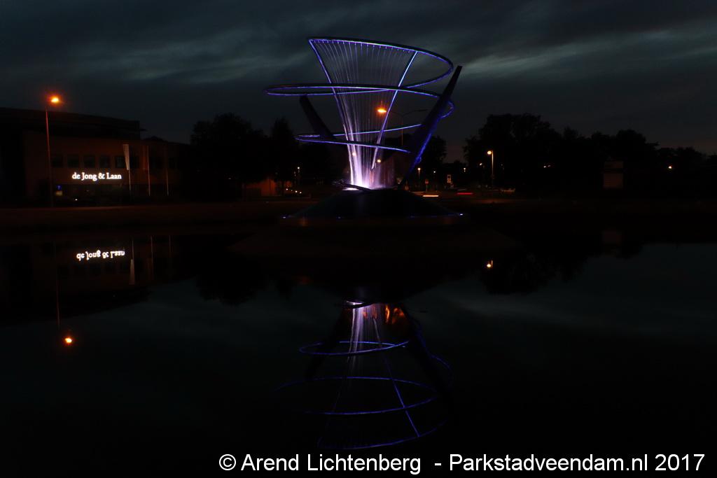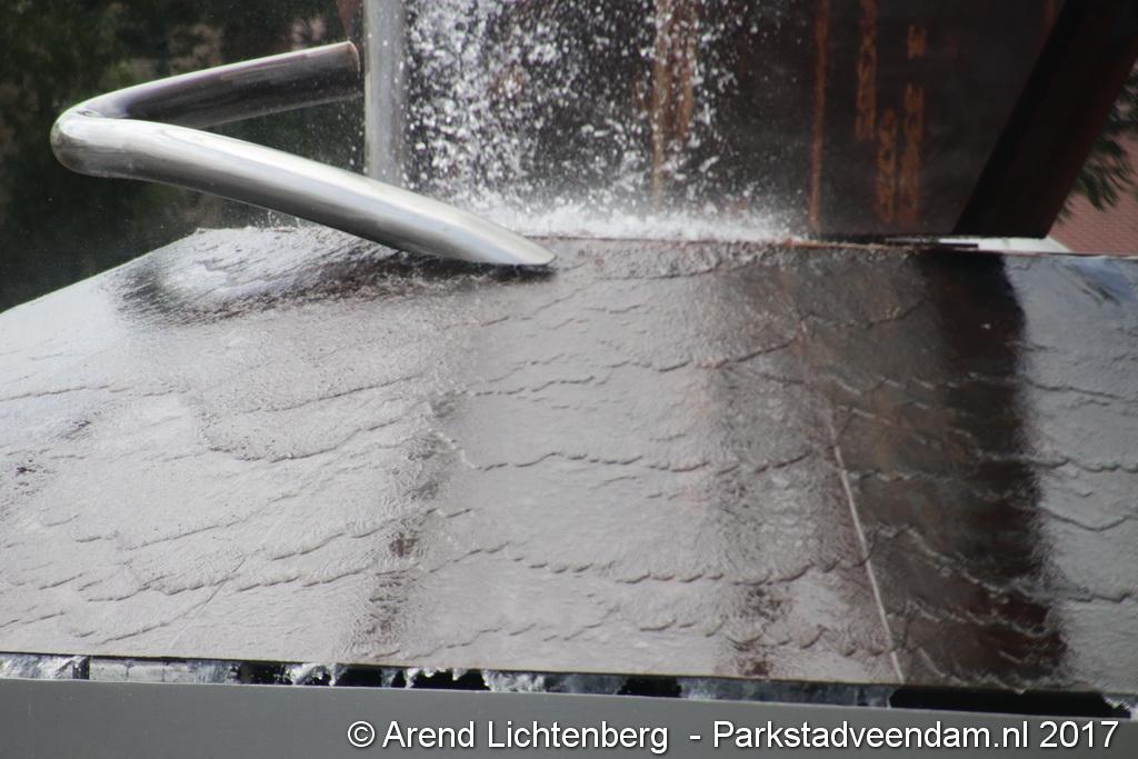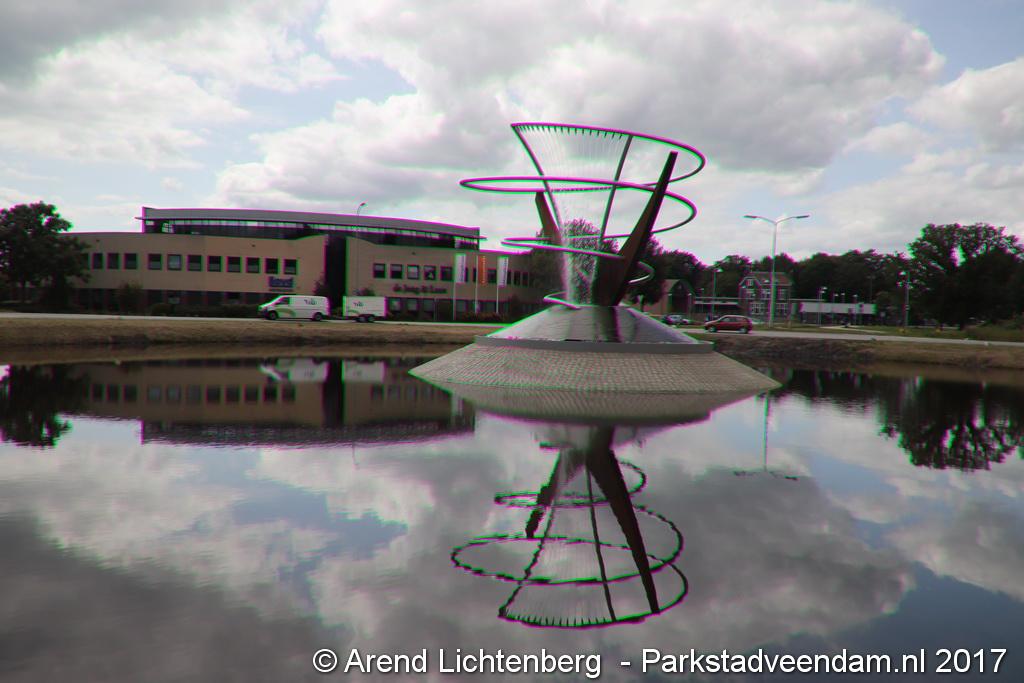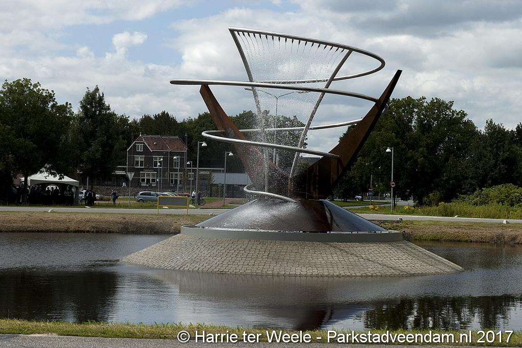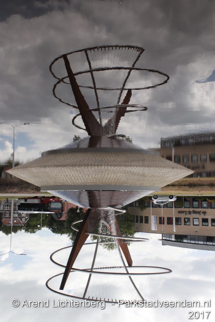 Donderdagmiddag zette wethouder Henk Jan Schmaal het kunstwerk op het Lloydsplein in Veendam officieel in werking. Het kunstwerk met waterberging is onderdeel van de reconstructie van het Lloydsplein.