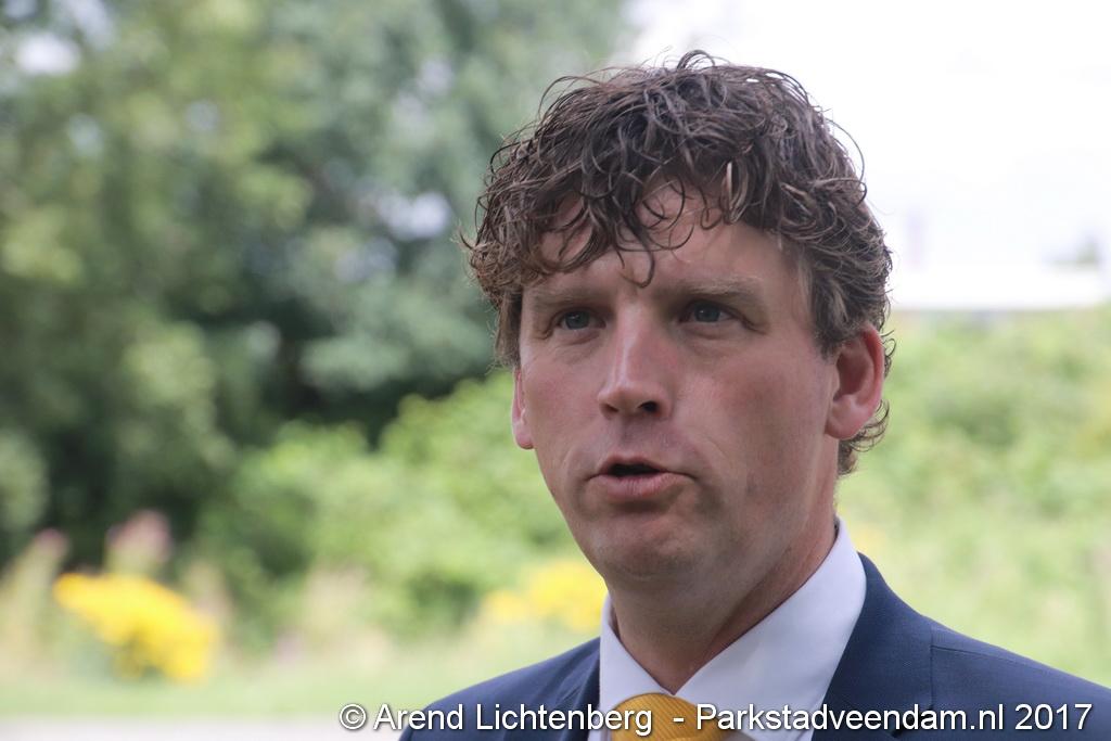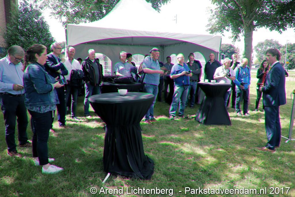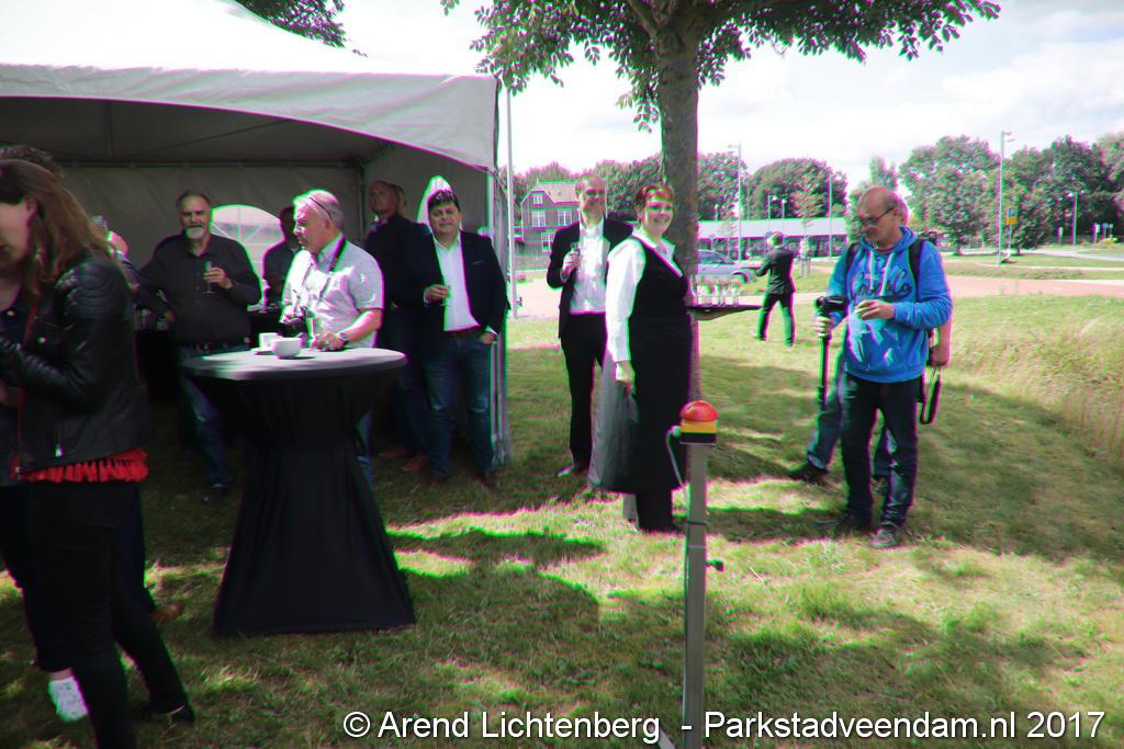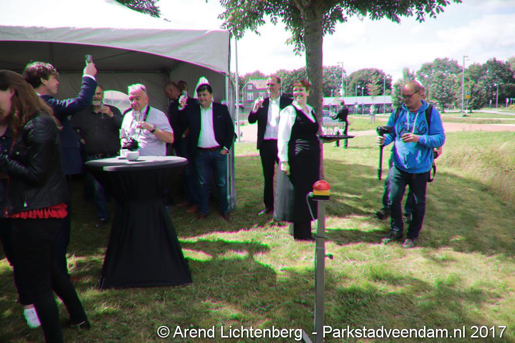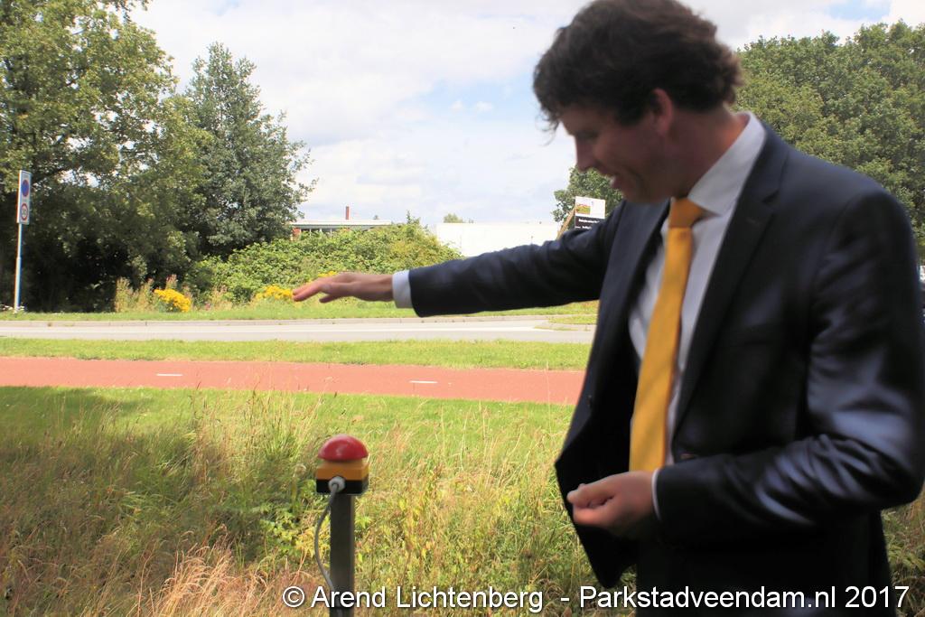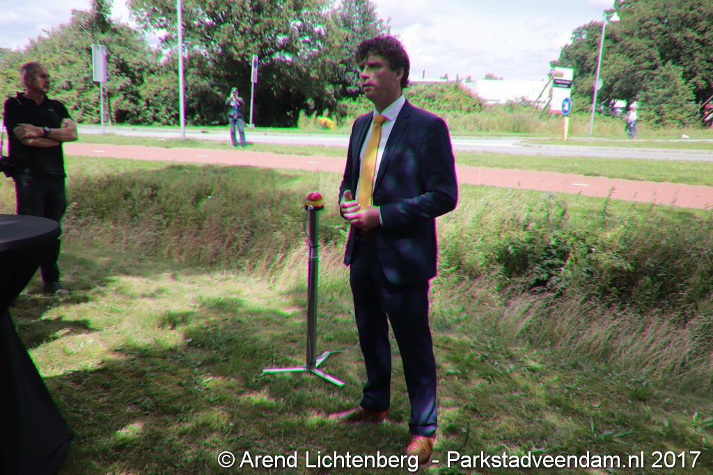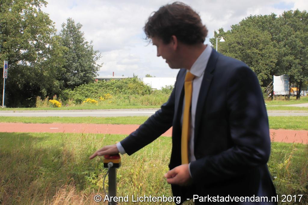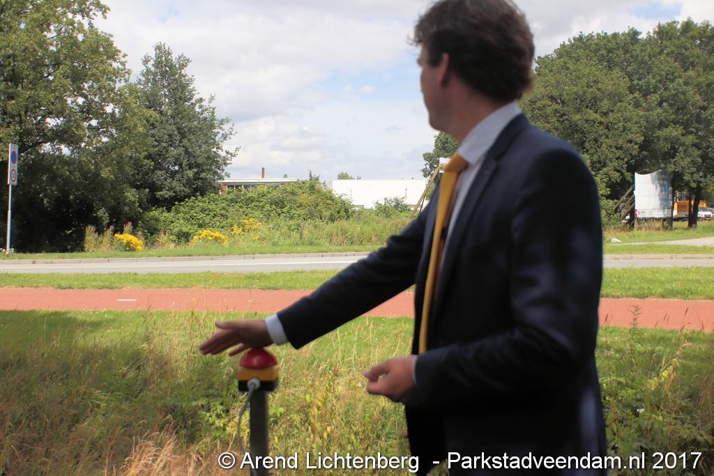Donderdagmiddag zette wethouder Henk Jan Schmaal het kunstwerk op het Lloydsplein in Veendam officieel in werking. Het kunstwerk met waterberging is onderdeel van de reconstructie van het Lloydsplein.