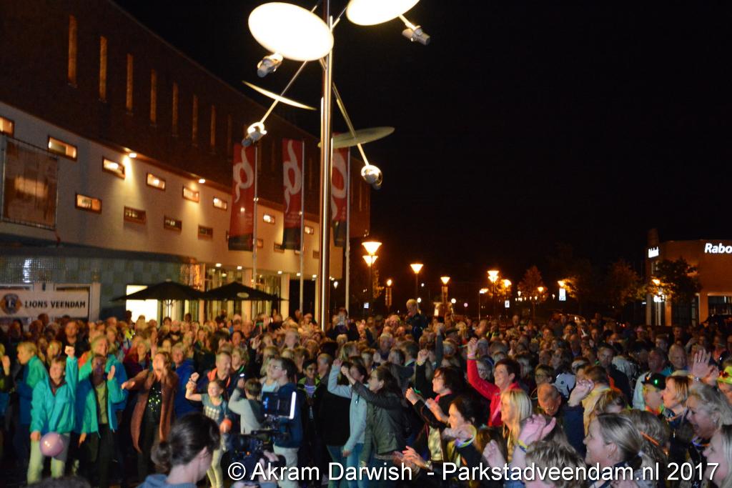 Het aftellen begint, 20.45 uur is de start. De Lions hoopten op een deelname van ca. 350 personen, het was de eerste keer tenslotte. Dan zoemen getallen rond van 500, bij de voorinschrijving wordt dit bijgesteld naar 680. Fantastisch! Maar… uiteindelijk met de na-inschrijvingen erbij komt men uit op ruim 800! Een zowel verrassend als onverwacht aantal. Doordat de sponsorgelden alle kosten dekken, gaat het totale bedrag aan inschrijfgeld naar de kinderboerderij, maar liefst € 8190,00. Een feest voor de Veendammers met een goed doel wat de kids van Veendam ten goede komt - geweldig. Maar er moet nog wel gelopen worden! Op het podium volgt een gezamenlijke warming up en dan gaan de eerste wandelaars op pad.
