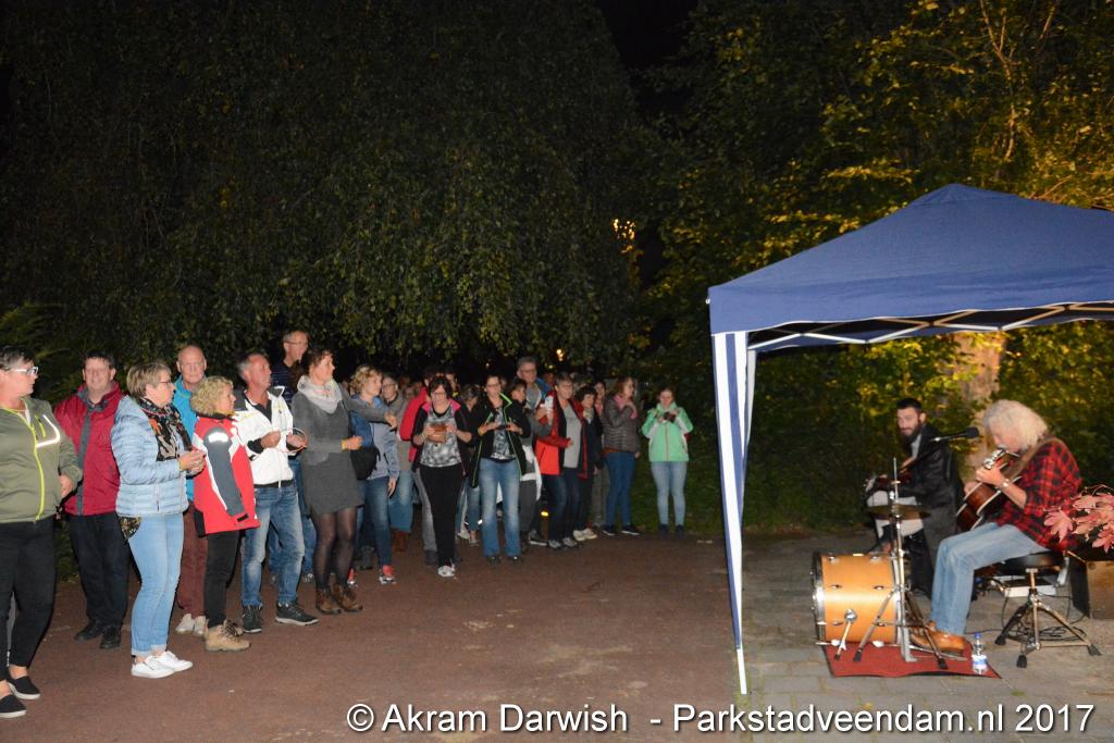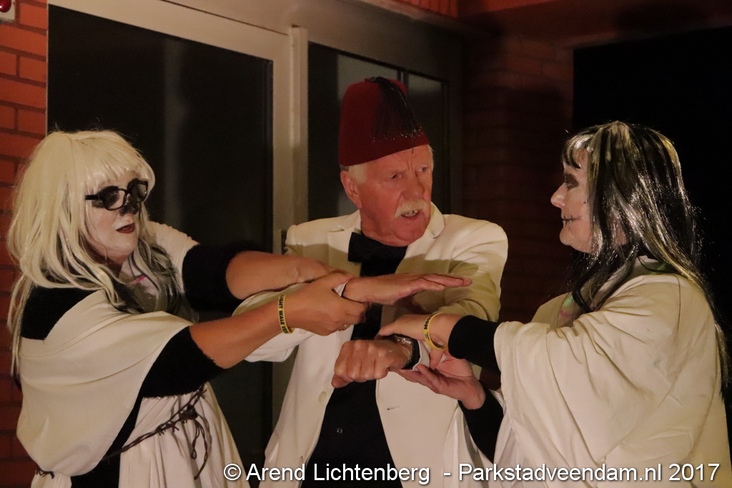 Wat een gezellige boel op het Museumplein en in vanBeresteyn vrijdagavond. Rond 19.00 uur begint het al wat drukker te worden. De zware laatste loodjes worden door de organisatie genomen en dan kan het feest beginnen. Die organisatie is in handen van de Lions Veendam met als ”opperhoofd” Jan Orsel. Er wordt gesleept met dranghekken, de “startballon” opgeblazen en de briefing met alle vrijwilligers, te veel om op te noemen, vindt plaats. Het wordt al een beetje donker en de lichten gaan al aan. We hebben als deelnemers allemaal een lichtgevende strip uitgereikt gekregen die om zowel hals, polsen als enkels past. Het levert een kleurrijk geheel op. Bovendien hebben diverse personen zich op bijzondere manier uitgedost. Zo komen we nonnetjes, spoken en anderszins tegen. Het wordt een bonte stoet!
