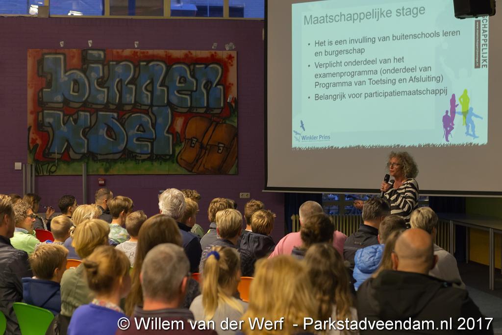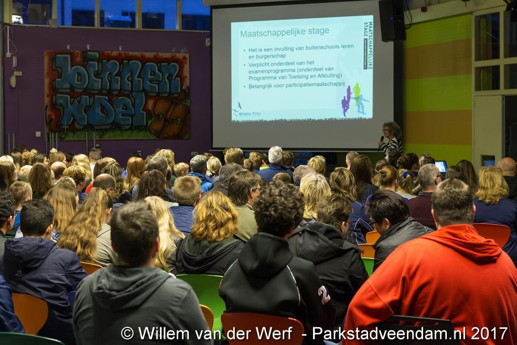 Dinsdagavond werd de Voorlichtingsmarkt Maatschappelijke Stage gehouden in de Winkler Prins aan de Raadsgildenlaan 1 te Veendam. Derdejaars leerlingen van de Winkler Prins moeten voor hun diploma 30 uur maatschappelijke stage lopen. Voordat ze met hun ouders de markt bezochten, werd er in de kantine de nodige informatie verteld door Wilma Biezen van de Winkler Prins.